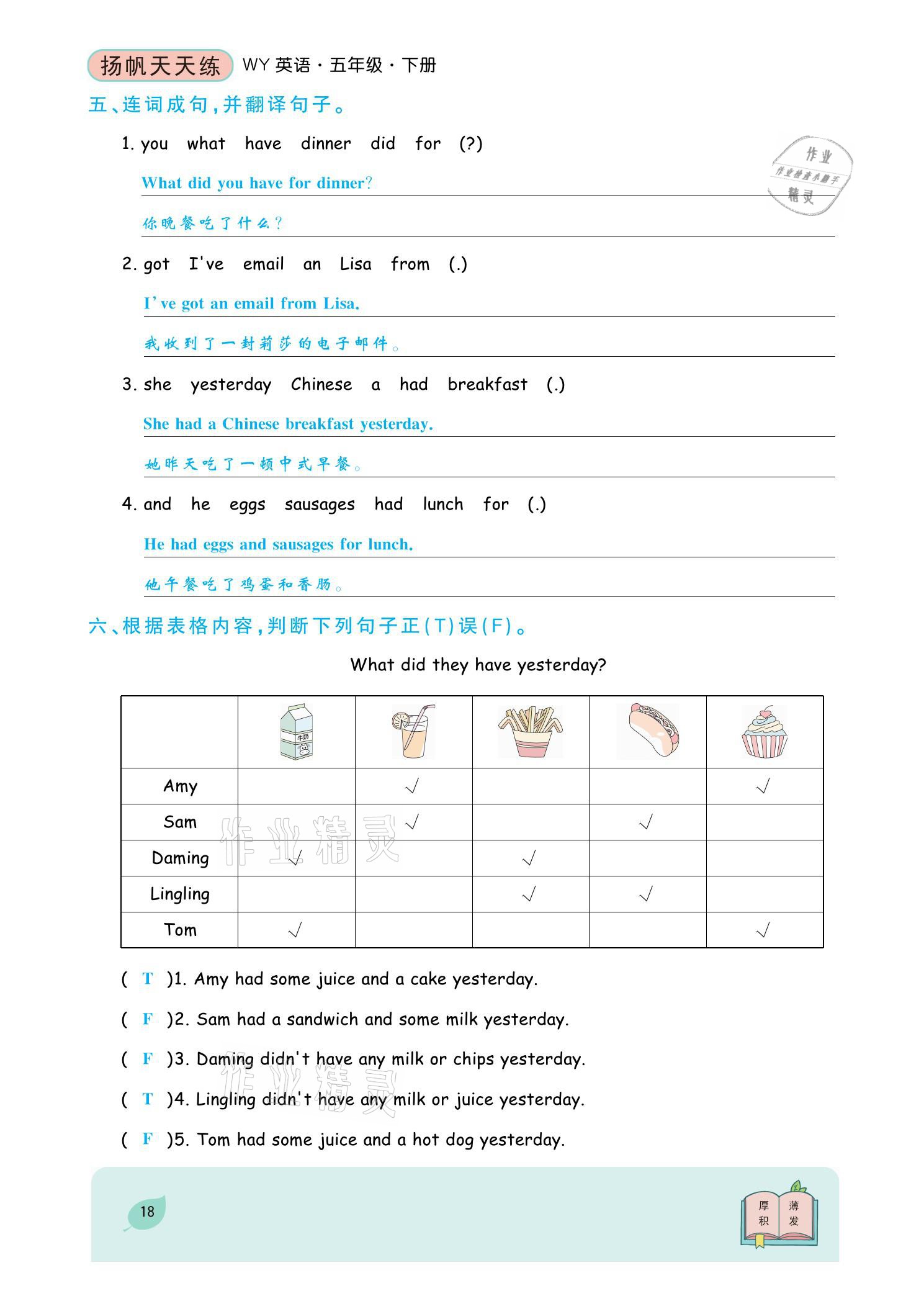 注:目前有些书本章节名称可能整理的还不是很完善,但都是按照顺序排列的,请同学们按照顺序仔细查找。练习册 2021年扬帆天天练五年级英语下册外研版 答案主要是用来给同学们做完题方便对答案用的,请勿直接抄袭。