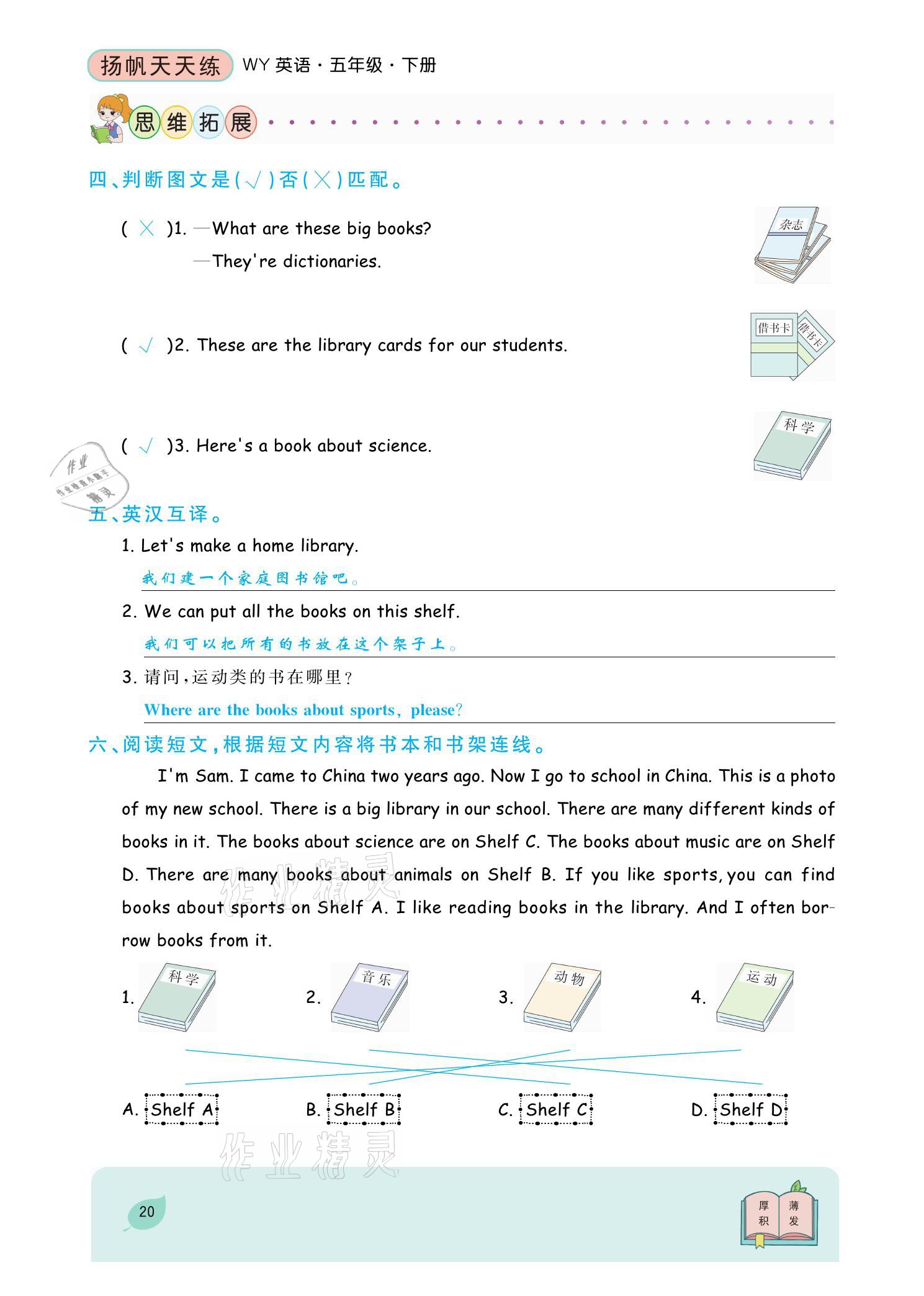 注:目前有些书本章节名称可能整理的还不是很完善,但都是按照顺序排列的,请同学们按照顺序仔细查找。练习册 2021年扬帆天天练五年级英语下册外研版 答案主要是用来给同学们做完题方便对答案用的,请勿直接抄袭。