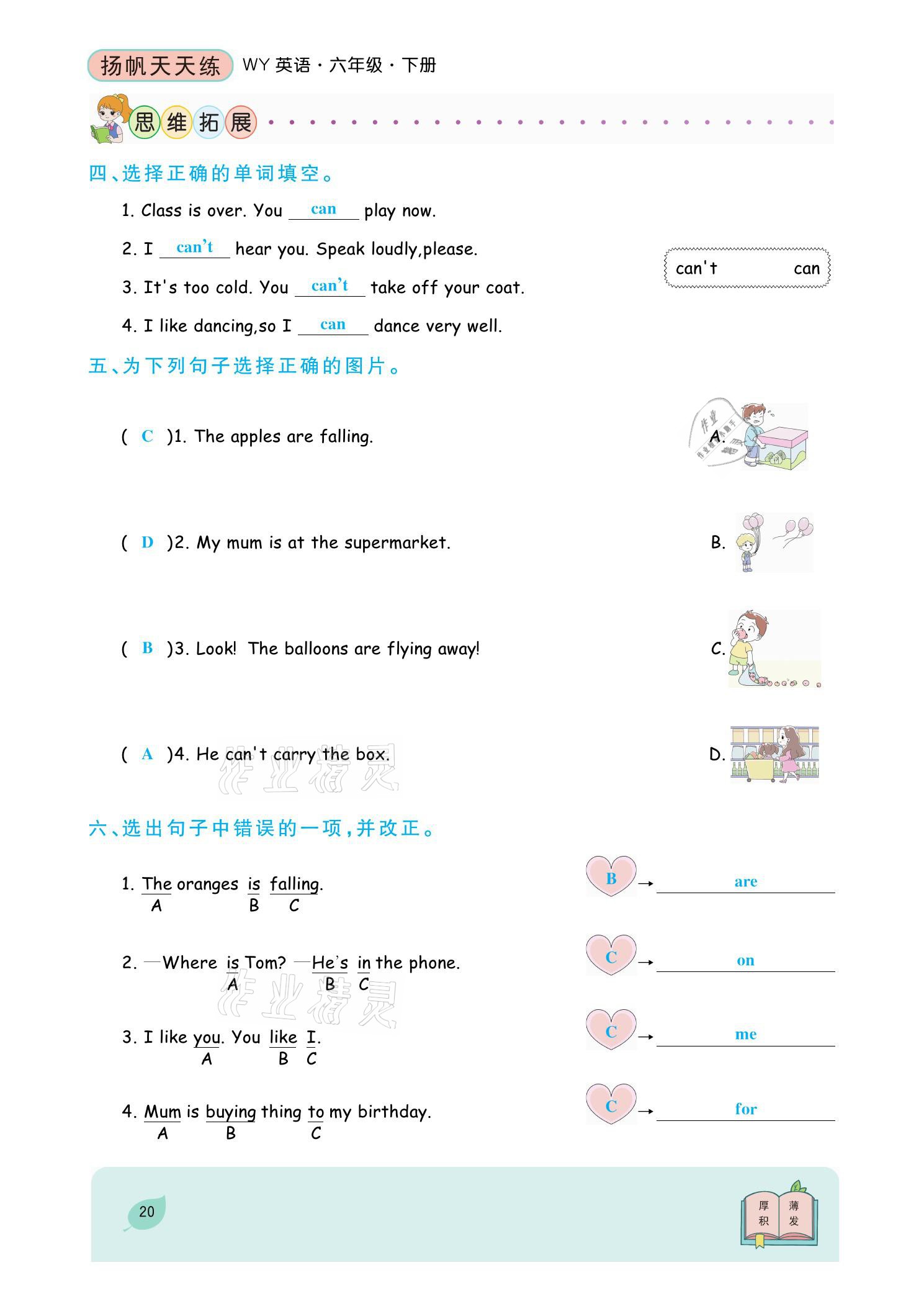 注:目前有些书本章节名称可能整理的还不是很完善,但都是按照顺序排列的,请同学们按照顺序仔细查找。练习册 2021年扬帆天天练六年级英语下册外研版 答案主要是用来给同学们做完题方便对答案用的,请勿直接抄袭。
