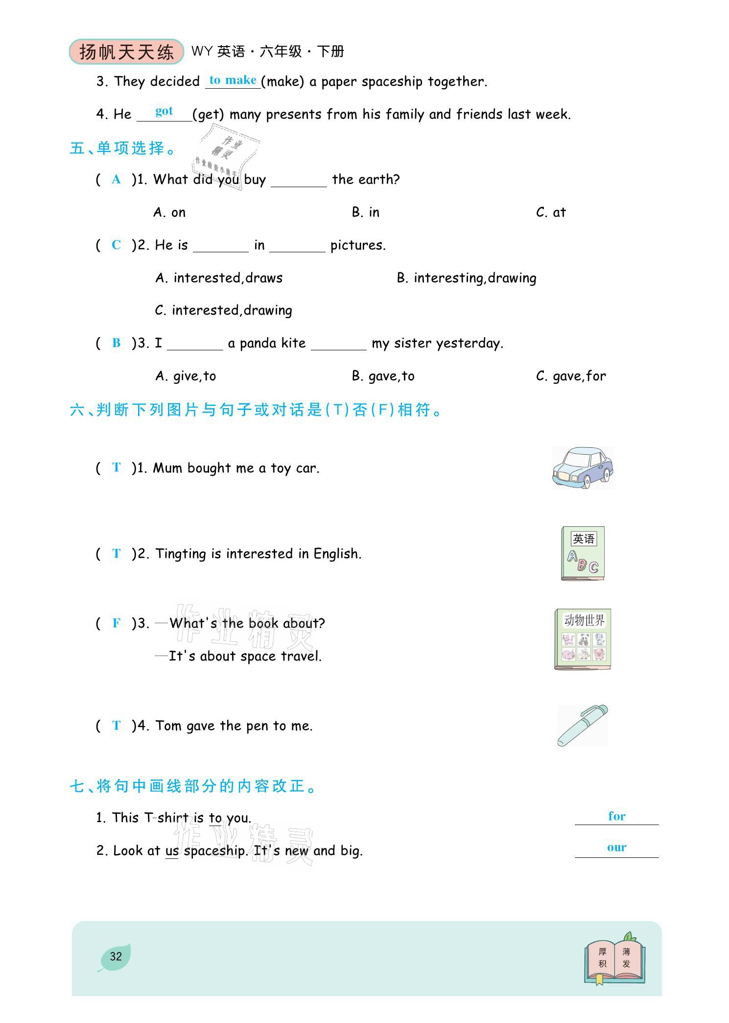 注:目前有些书本章节名称可能整理的还不是很完善,但都是按照顺序排列的,请同学们按照顺序仔细查找。练习册 2021年扬帆天天练六年级英语下册外研版 答案主要是用来给同学们做完题方便对答案用的,请勿直接抄袭。