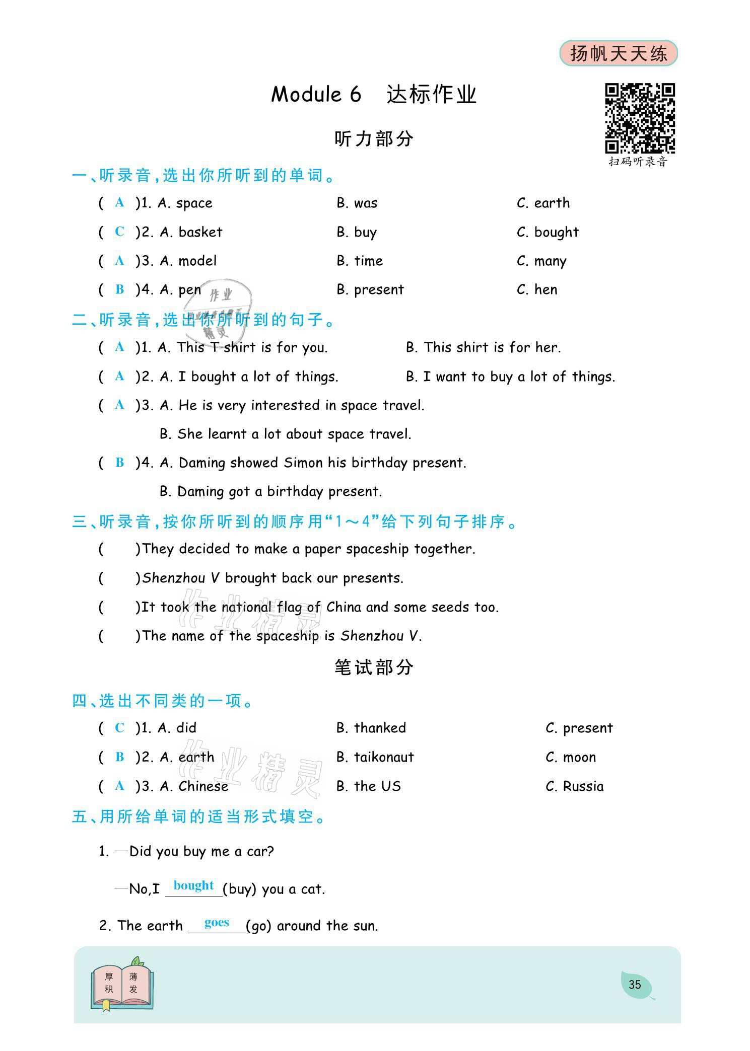 注:目前有些书本章节名称可能整理的还不是很完善,但都是按照顺序排列的,请同学们按照顺序仔细查找。练习册 2021年扬帆天天练六年级英语下册外研版 答案主要是用来给同学们做完题方便对答案用的,请勿直接抄袭。