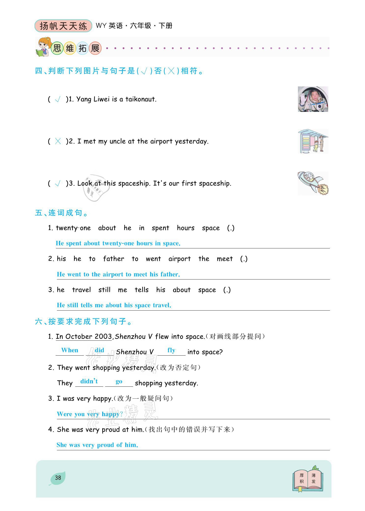 注:目前有些书本章节名称可能整理的还不是很完善,但都是按照顺序排列的,请同学们按照顺序仔细查找。练习册 2021年扬帆天天练六年级英语下册外研版 答案主要是用来给同学们做完题方便对答案用的,请勿直接抄袭。