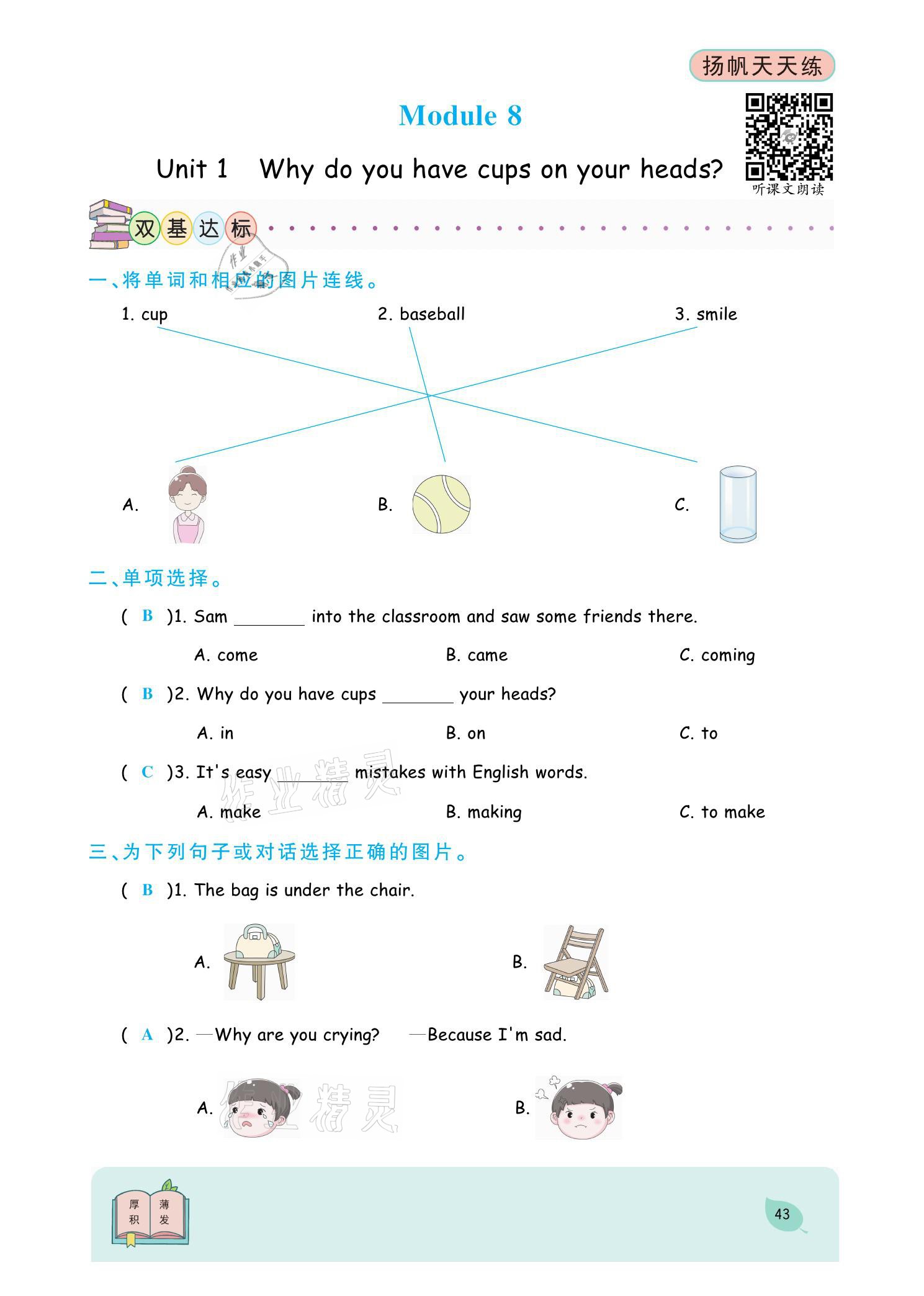 注:目前有些书本章节名称可能整理的还不是很完善,但都是按照顺序排列的,请同学们按照顺序仔细查找。练习册 2021年扬帆天天练六年级英语下册外研版 答案主要是用来给同学们做完题方便对答案用的,请勿直接抄袭。