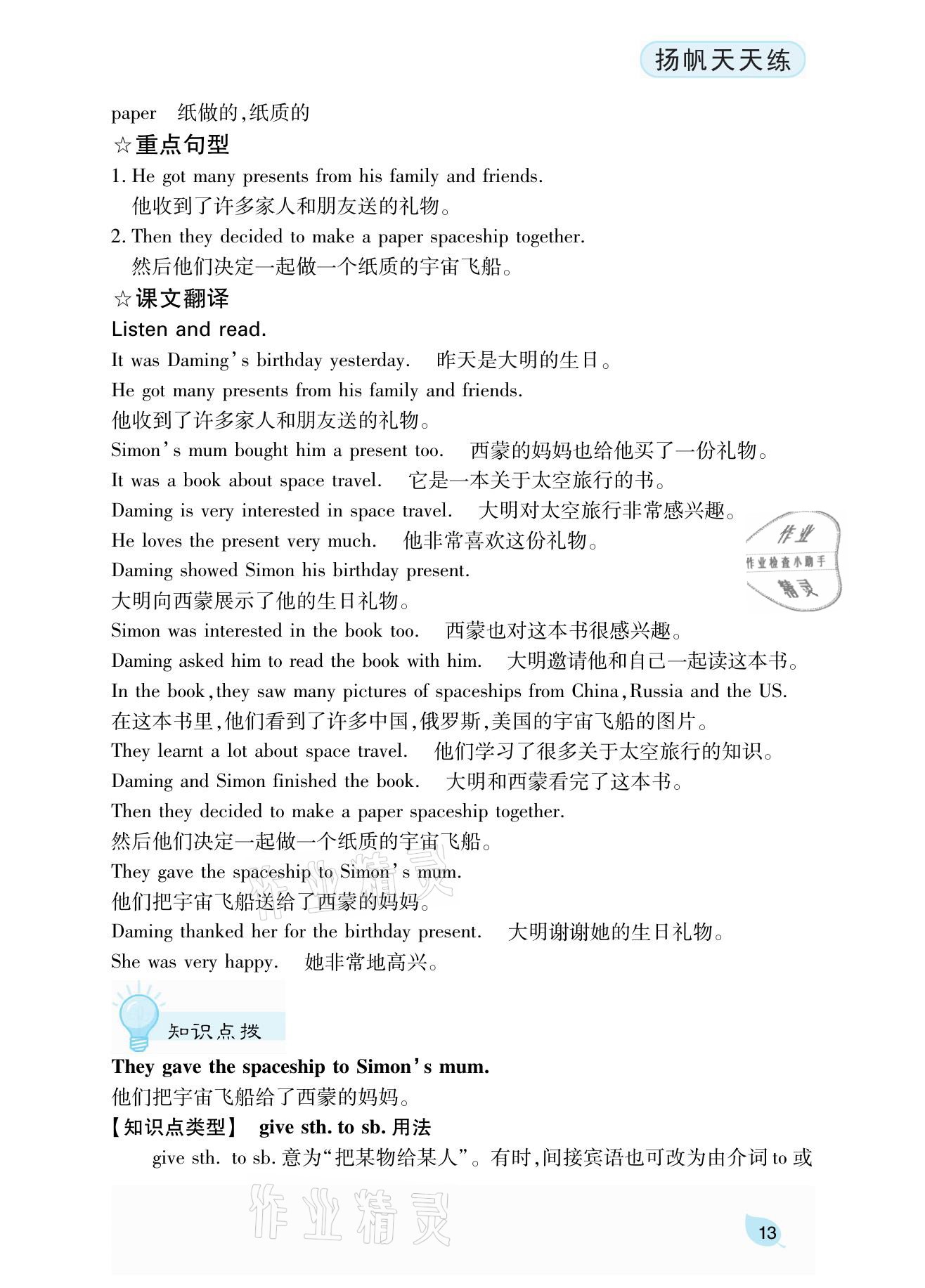 注:目前有些书本章节名称可能整理的还不是很完善,但都是按照顺序排列的,请同学们按照顺序仔细查找。练习册 2021年扬帆天天练六年级英语下册外研版 答案主要是用来给同学们做完题方便对答案用的,请勿直接抄袭。