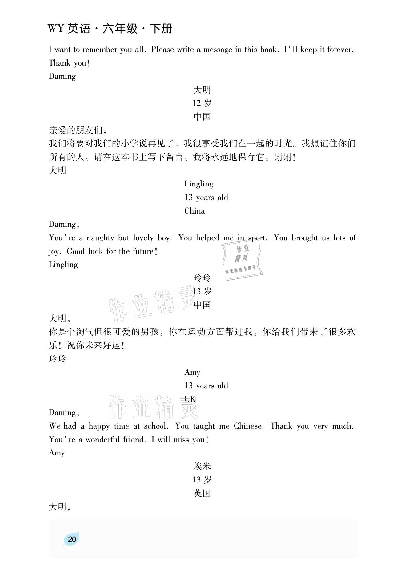 注:目前有些书本章节名称可能整理的还不是很完善,但都是按照顺序排列的,请同学们按照顺序仔细查找。练习册 2021年扬帆天天练六年级英语下册外研版 答案主要是用来给同学们做完题方便对答案用的,请勿直接抄袭。