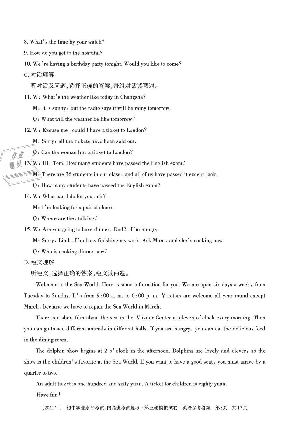 注:目前有些书本章节名称可能整理的还不是很完善,但都是按照顺序排列的,请同学们按照顺序仔细查找。练习册 2021年初中学业水平考试复习第三轮模拟试卷 答案主要是用来给同学们做完题方便对答案用的,请勿直接抄袭。