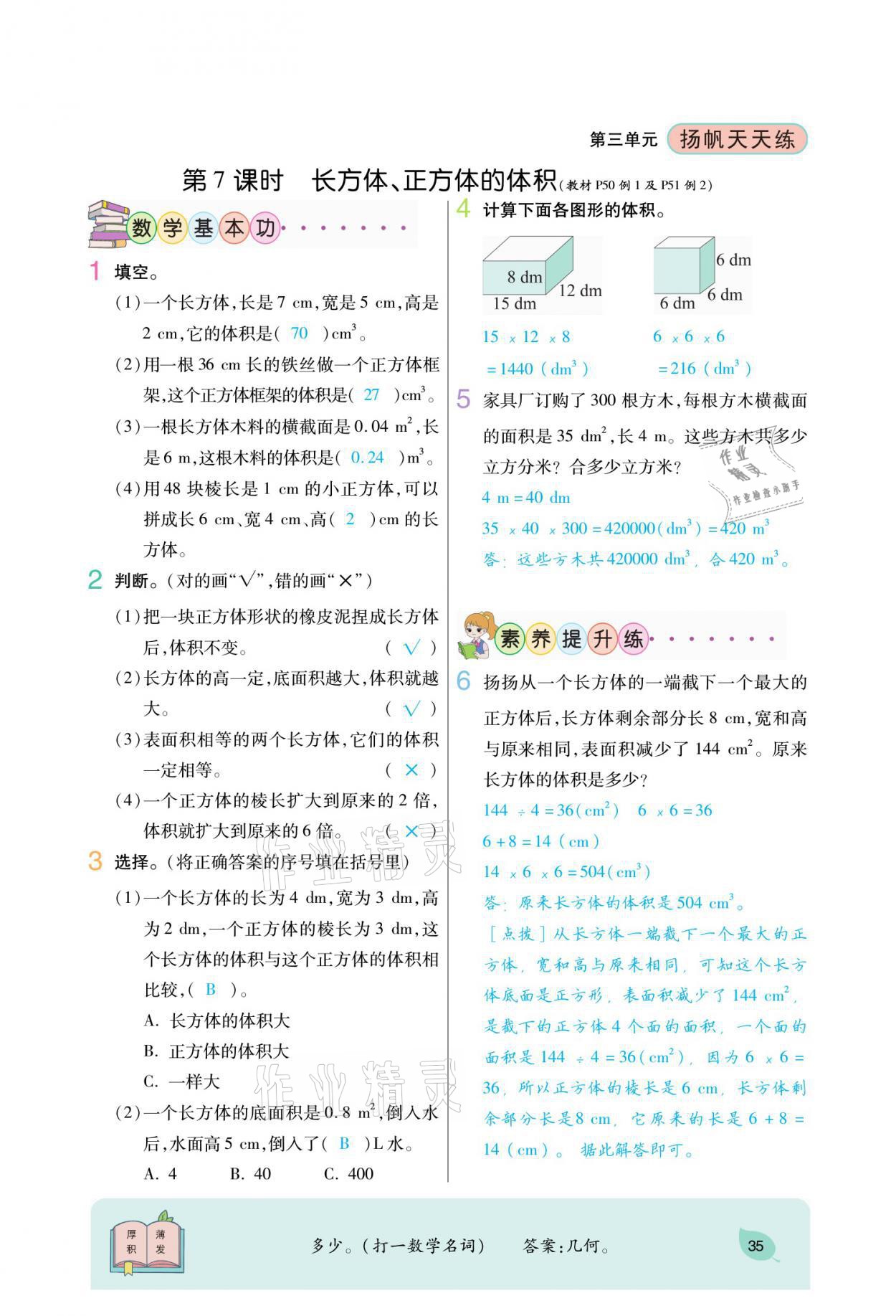 注:目前有些书本章节名称可能整理的还不是很完善,但都是按照顺序排列的,请同学们按照顺序仔细查找。练习册 2021年扬帆天天练五年级数学下册西师大版 答案主要是用来给同学们做完题方便对答案用的,请勿直接抄袭。