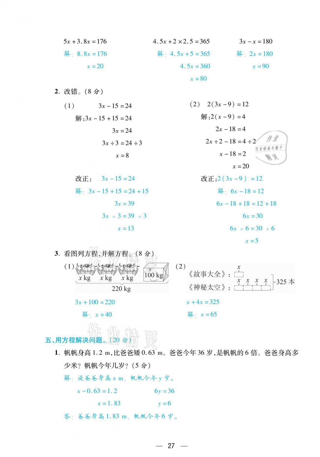 注:目前有些书本章节名称可能整理的还不是很完善,但都是按照顺序排列的,请同学们按照顺序仔细查找。练习册 2021年扬帆天天练五年级数学下册西师大版 答案主要是用来给同学们做完题方便对答案用的,请勿直接抄袭。