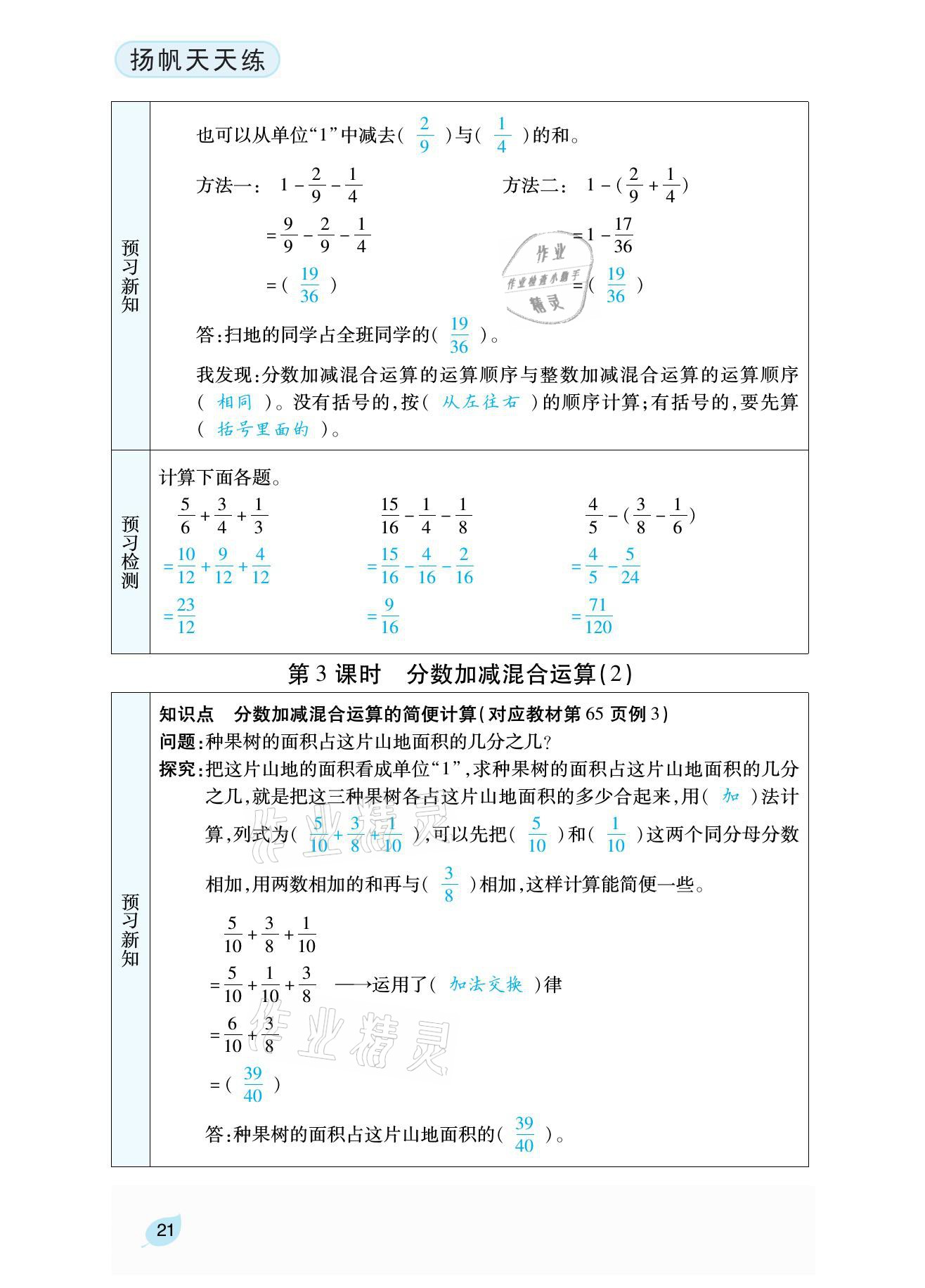注:目前有些书本章节名称可能整理的还不是很完善,但都是按照顺序排列的,请同学们按照顺序仔细查找。练习册 2021年扬帆天天练五年级数学下册西师大版 答案主要是用来给同学们做完题方便对答案用的,请勿直接抄袭。