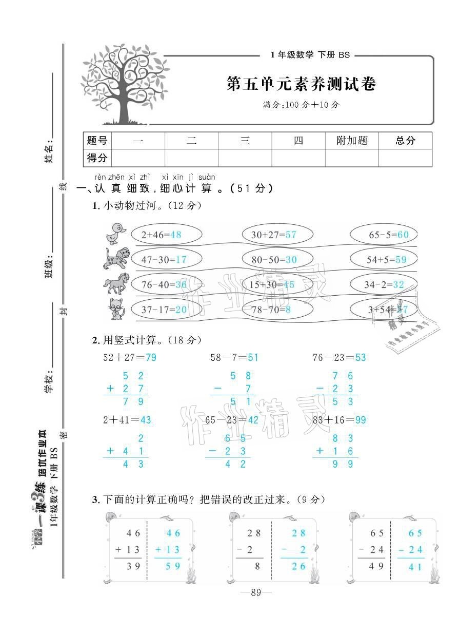 注:目前有些书本章节名称可能整理的还不是很完善,但都是按照顺序排列的,请同学们按照顺序仔细查找。练习册 2021年小学1课3练培优作业本一年级数学下册北师大版 答案主要是用来给同学们做完题方便对答案用的,请勿直接抄袭。