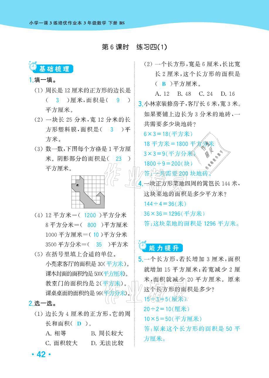 注:目前有些书本章节名称可能整理的还不是很完善,但都是按照顺序排列的,请同学们按照顺序仔细查找。练习册 2021年小学1课3练培优作业本三年级数学下册北师大版 答案主要是用来给同学们做完题方便对答案用的,请勿直接抄袭。