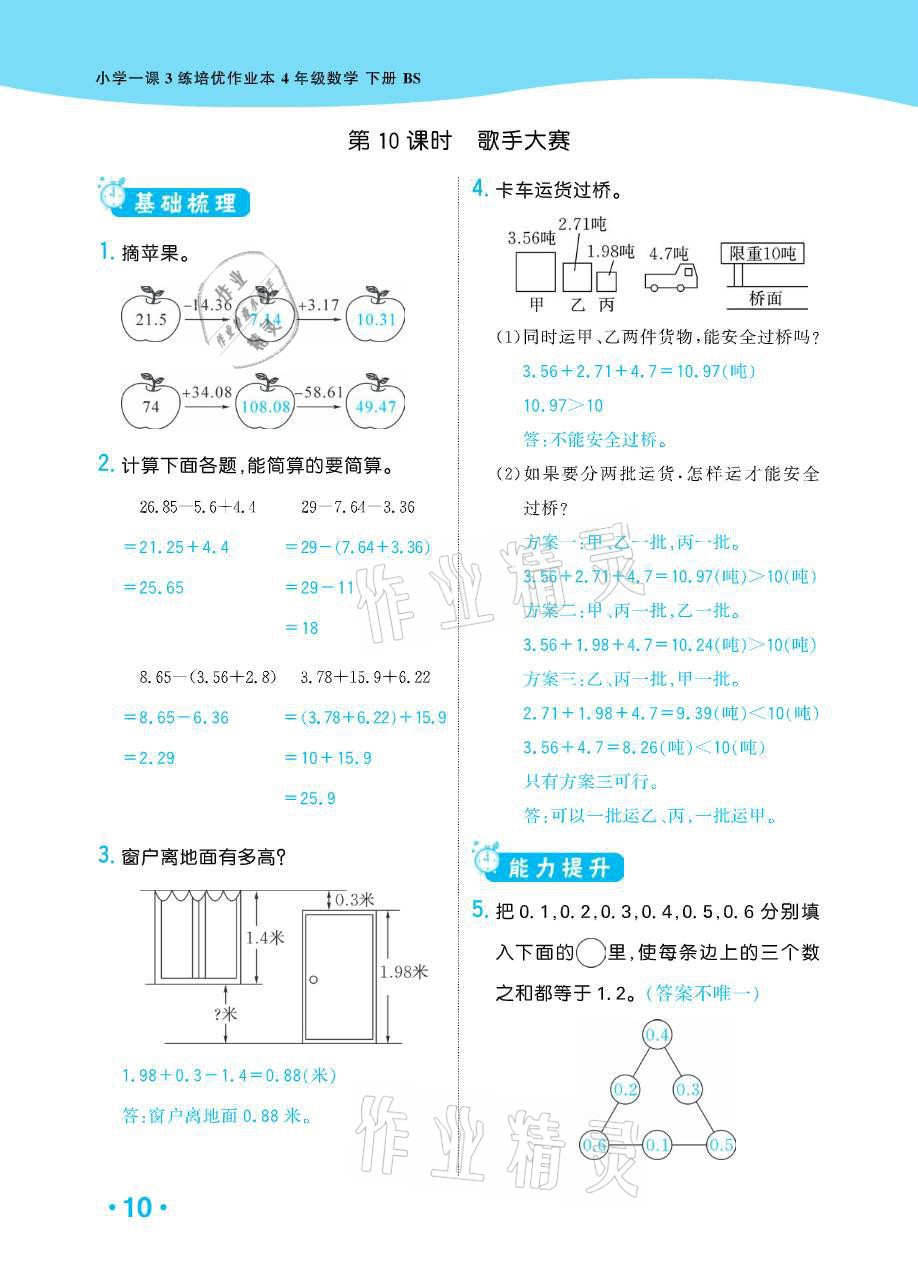 注:目前有些书本章节名称可能整理的还不是很完善,但都是按照顺序排列的,请同学们按照顺序仔细查找。练习册 2021年小学1课3练培优作业本四年级数学下册北师大版 答案主要是用来给同学们做完题方便对答案用的,请勿直接抄袭。