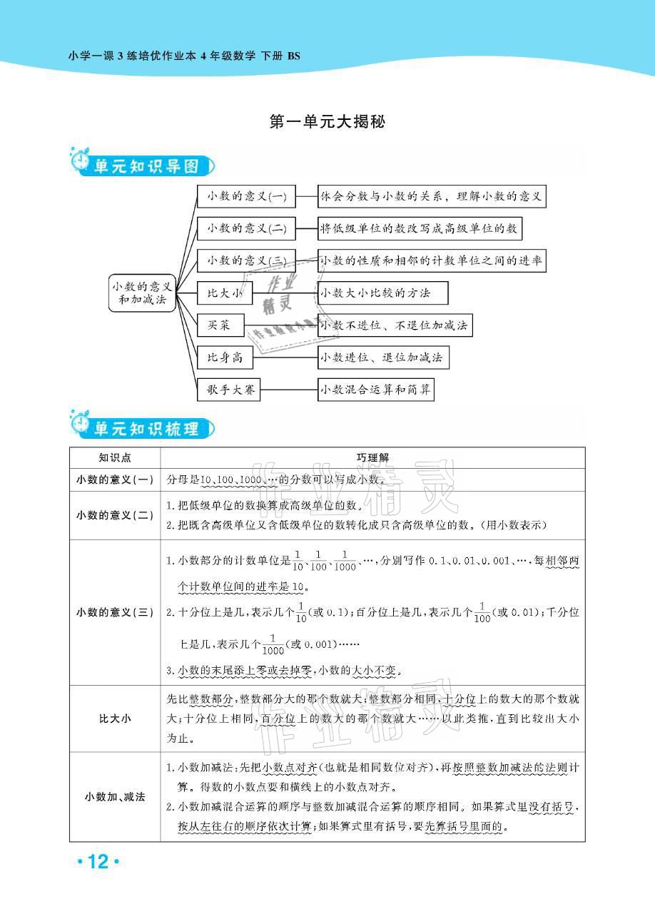 注:目前有些书本章节名称可能整理的还不是很完善,但都是按照顺序排列的,请同学们按照顺序仔细查找。练习册 2021年小学1课3练培优作业本四年级数学下册北师大版 答案主要是用来给同学们做完题方便对答案用的,请勿直接抄袭。