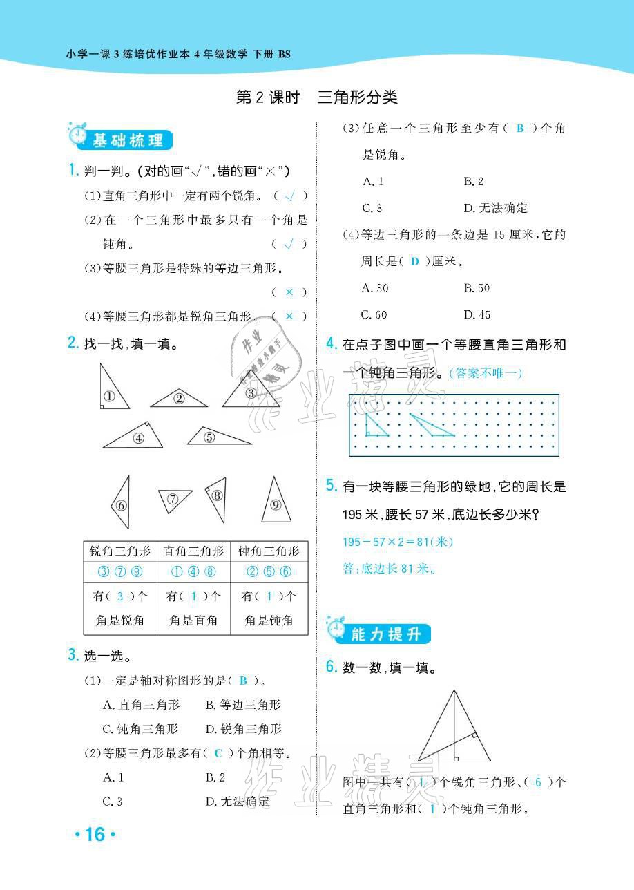 注:目前有些书本章节名称可能整理的还不是很完善,但都是按照顺序排列的,请同学们按照顺序仔细查找。练习册 2021年小学1课3练培优作业本四年级数学下册北师大版 答案主要是用来给同学们做完题方便对答案用的,请勿直接抄袭。