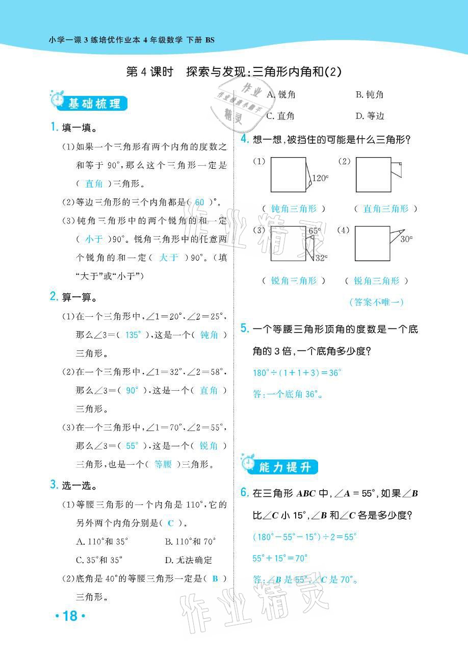 注:目前有些书本章节名称可能整理的还不是很完善,但都是按照顺序排列的,请同学们按照顺序仔细查找。练习册 2021年小学1课3练培优作业本四年级数学下册北师大版 答案主要是用来给同学们做完题方便对答案用的,请勿直接抄袭。