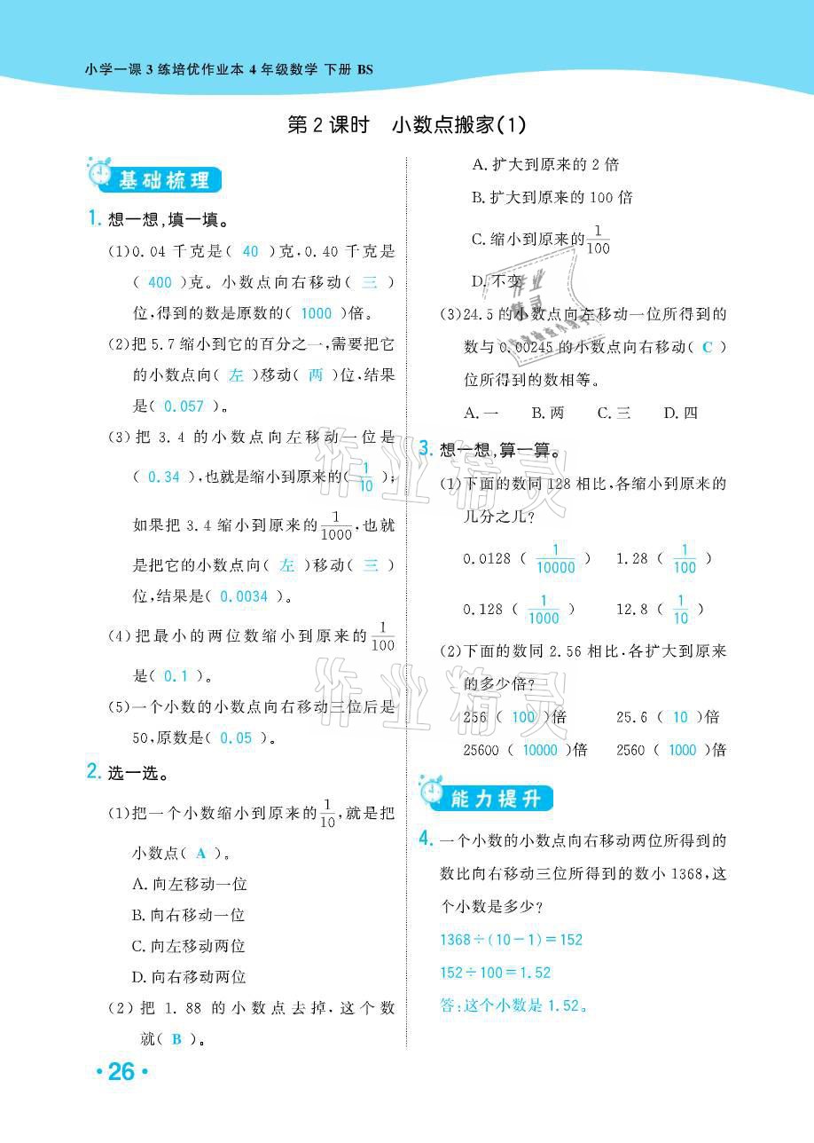注:目前有些书本章节名称可能整理的还不是很完善,但都是按照顺序排列的,请同学们按照顺序仔细查找。练习册 2021年小学1课3练培优作业本四年级数学下册北师大版 答案主要是用来给同学们做完题方便对答案用的,请勿直接抄袭。