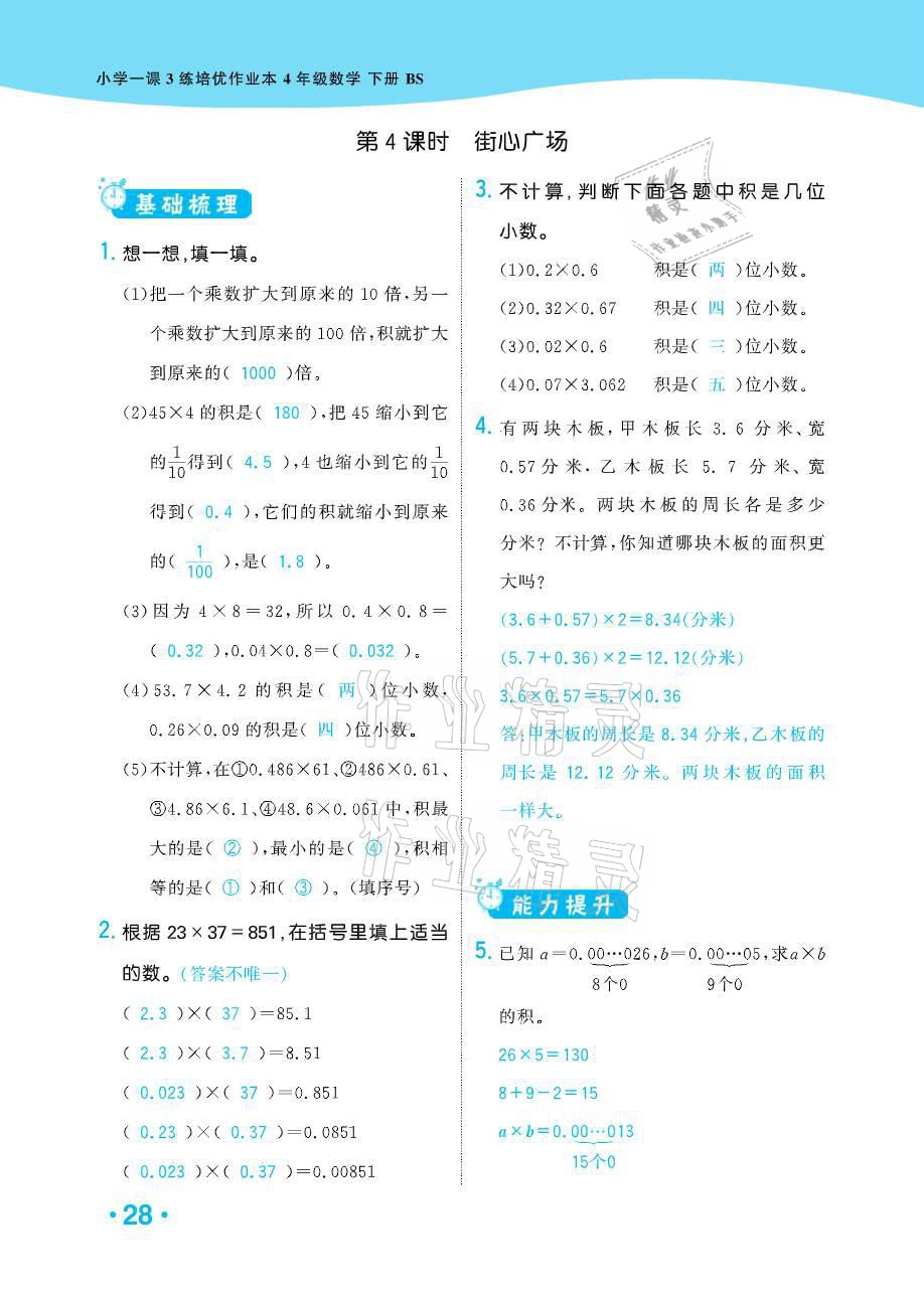 注:目前有些书本章节名称可能整理的还不是很完善,但都是按照顺序排列的,请同学们按照顺序仔细查找。练习册 2021年小学1课3练培优作业本四年级数学下册北师大版 答案主要是用来给同学们做完题方便对答案用的,请勿直接抄袭。