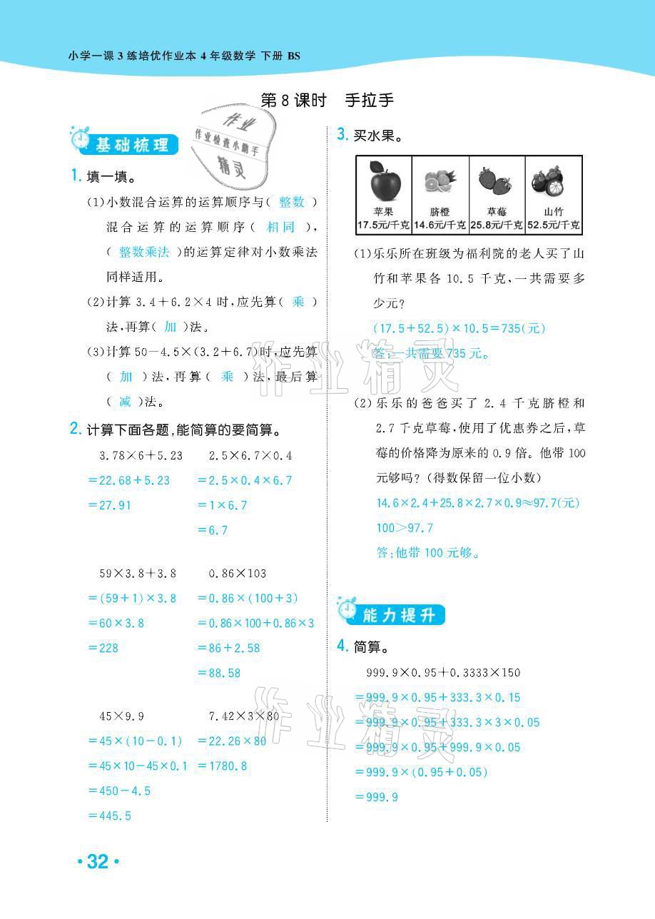 注:目前有些书本章节名称可能整理的还不是很完善,但都是按照顺序排列的,请同学们按照顺序仔细查找。练习册 2021年小学1课3练培优作业本四年级数学下册北师大版 答案主要是用来给同学们做完题方便对答案用的,请勿直接抄袭。