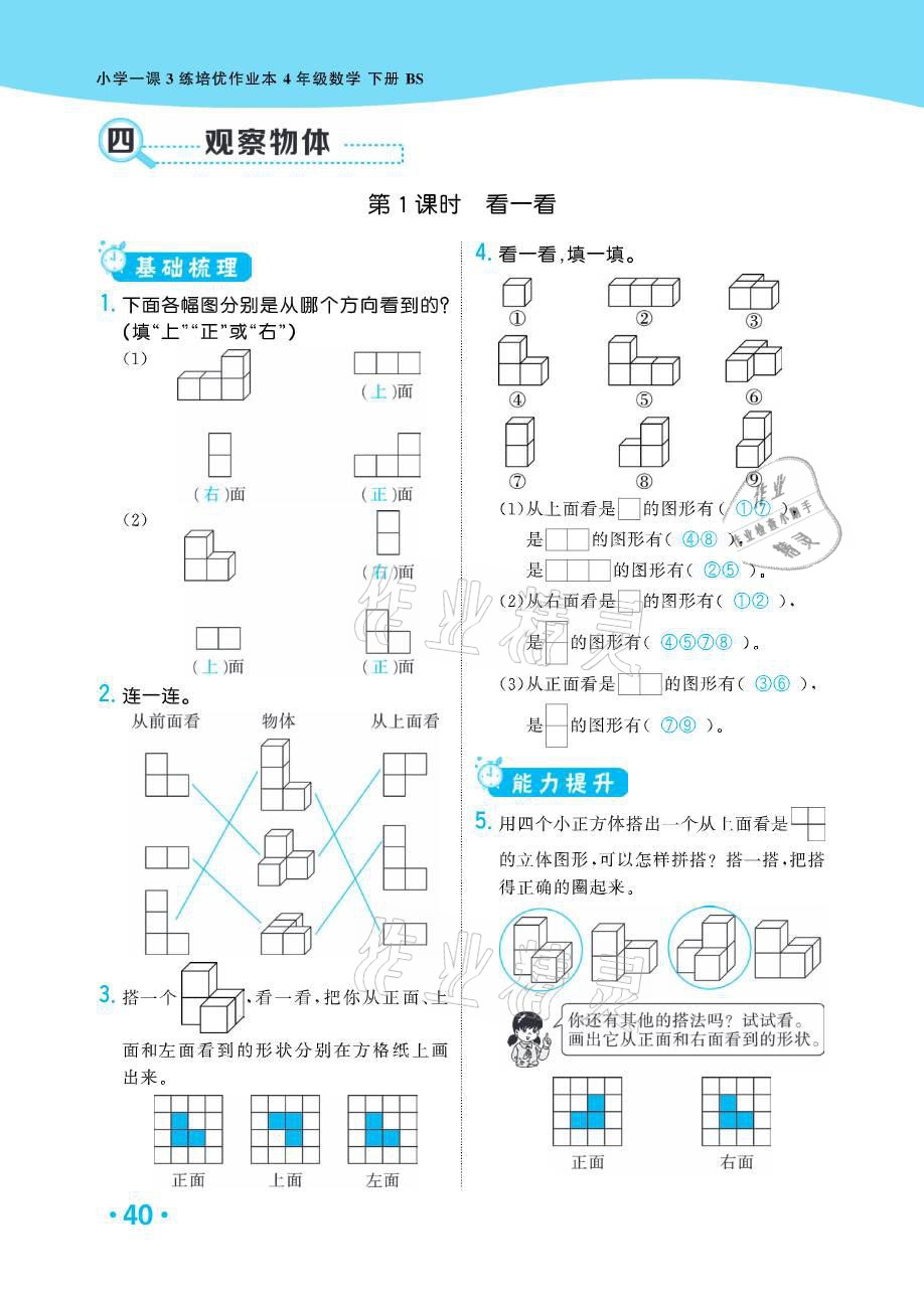 注:目前有些书本章节名称可能整理的还不是很完善,但都是按照顺序排列的,请同学们按照顺序仔细查找。练习册 2021年小学1课3练培优作业本四年级数学下册北师大版 答案主要是用来给同学们做完题方便对答案用的,请勿直接抄袭。