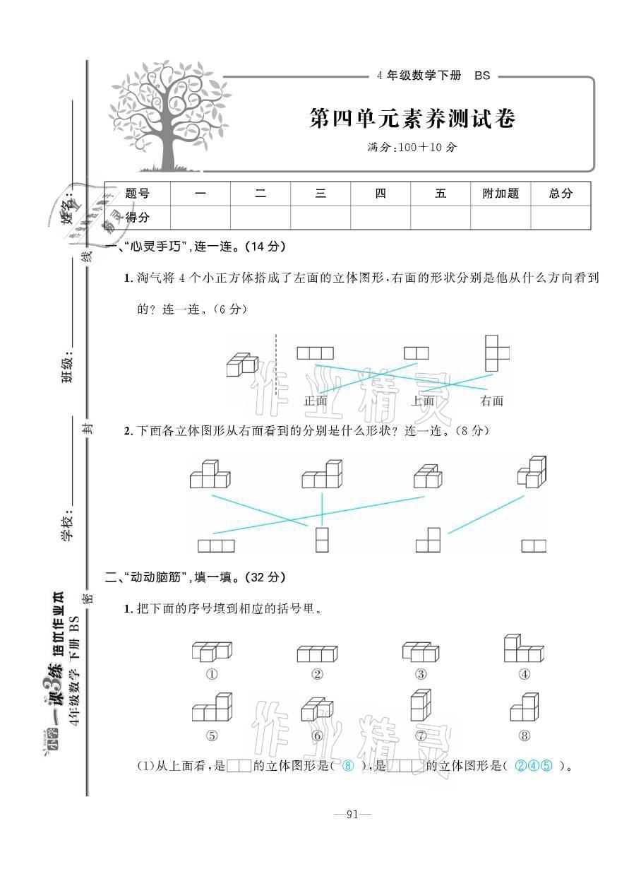 注:目前有些书本章节名称可能整理的还不是很完善,但都是按照顺序排列的,请同学们按照顺序仔细查找。练习册 2021年小学1课3练培优作业本四年级数学下册北师大版 答案主要是用来给同学们做完题方便对答案用的,请勿直接抄袭。