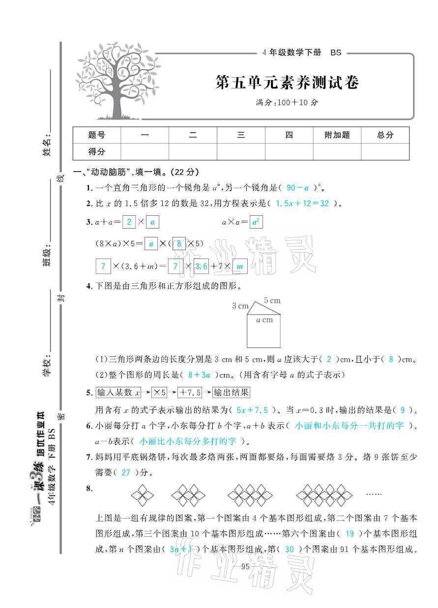 注:目前有些书本章节名称可能整理的还不是很完善,但都是按照顺序排列的,请同学们按照顺序仔细查找。练习册 2021年小学1课3练培优作业本四年级数学下册北师大版 答案主要是用来给同学们做完题方便对答案用的,请勿直接抄袭。
