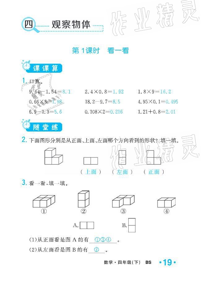 注:目前有些书本章节名称可能整理的还不是很完善,但都是按照顺序排列的,请同学们按照顺序仔细查找。练习册 2021年小学1课3练培优作业本四年级数学下册北师大版 答案主要是用来给同学们做完题方便对答案用的,请勿直接抄袭。