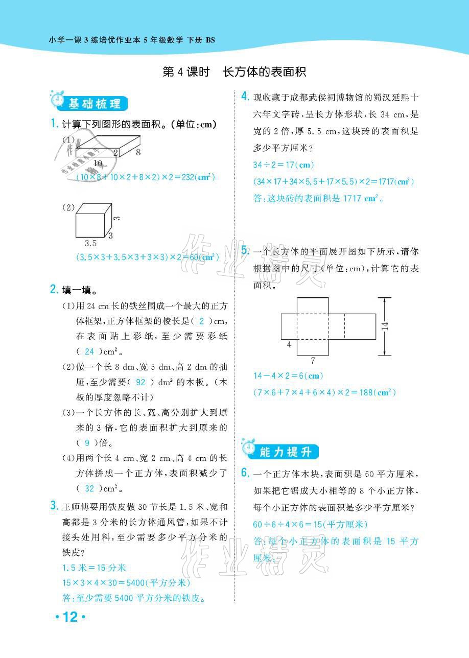 注:目前有些书本章节名称可能整理的还不是很完善,但都是按照顺序排列的,请同学们按照顺序仔细查找。练习册 2021年小学1课3练培优作业本五年级数学下册北师大版 答案主要是用来给同学们做完题方便对答案用的,请勿直接抄袭。