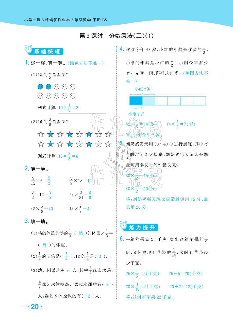 注:目前有些书本章节名称可能整理的还不是很完善,但都是按照顺序排列的,请同学们按照顺序仔细查找。练习册 2021年小学1课3练培优作业本五年级数学下册北师大版 答案主要是用来给同学们做完题方便对答案用的,请勿直接抄袭。