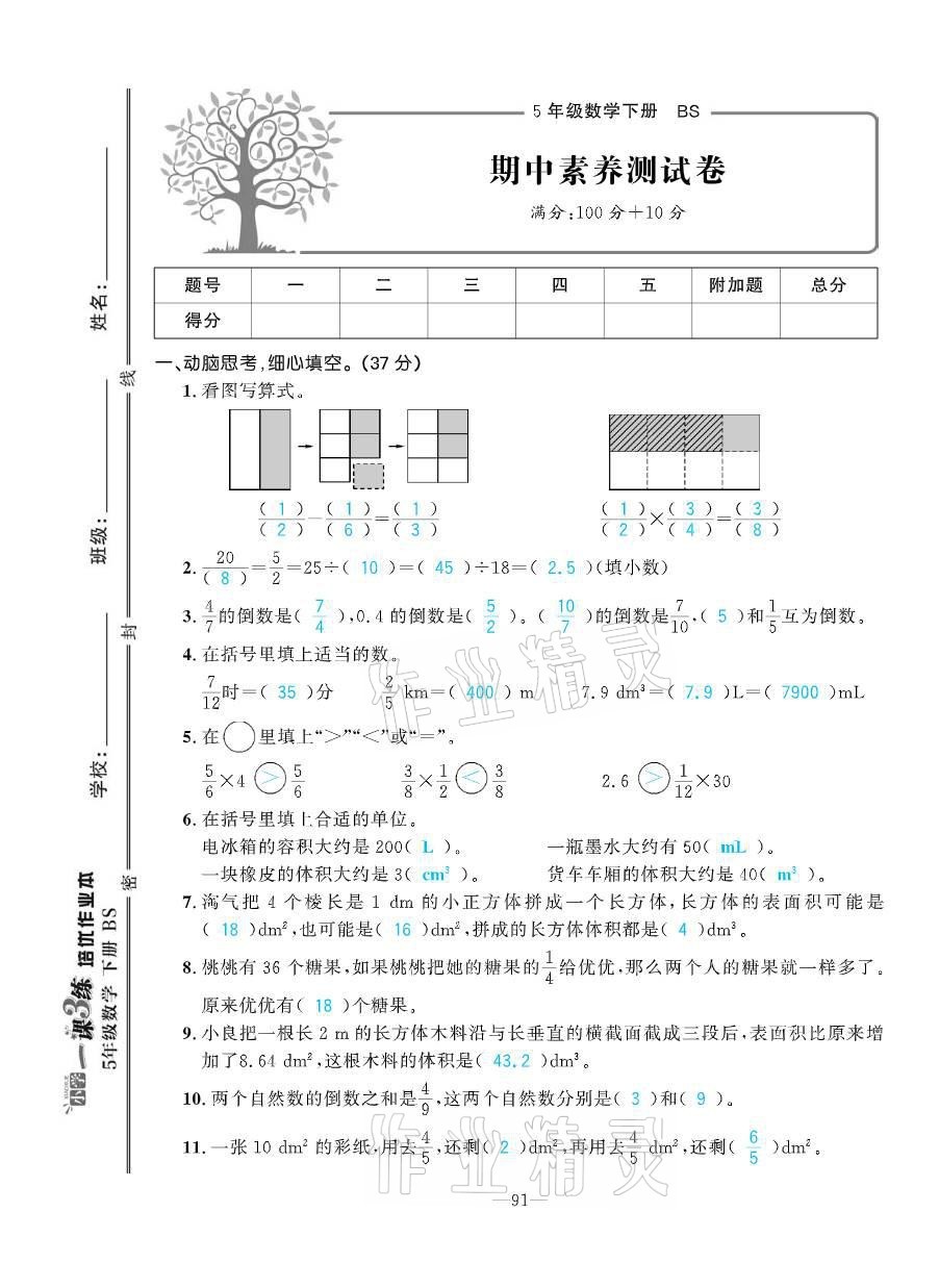 注:目前有些书本章节名称可能整理的还不是很完善,但都是按照顺序排列的,请同学们按照顺序仔细查找。练习册 2021年小学1课3练培优作业本五年级数学下册北师大版 答案主要是用来给同学们做完题方便对答案用的,请勿直接抄袭。