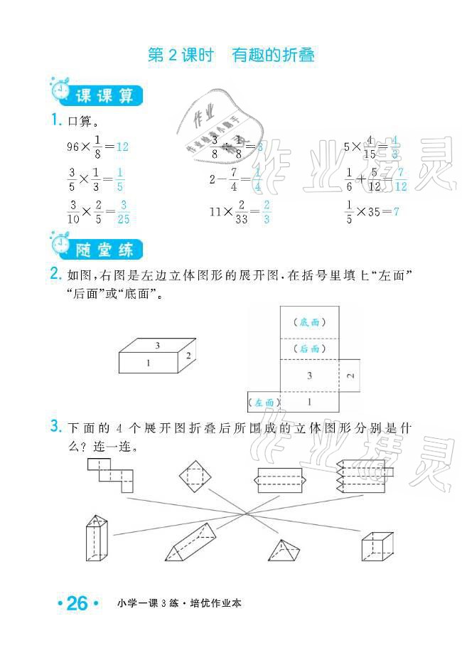 注:目前有些书本章节名称可能整理的还不是很完善,但都是按照顺序排列的,请同学们按照顺序仔细查找。练习册 2021年小学1课3练培优作业本五年级数学下册北师大版 答案主要是用来给同学们做完题方便对答案用的,请勿直接抄袭。