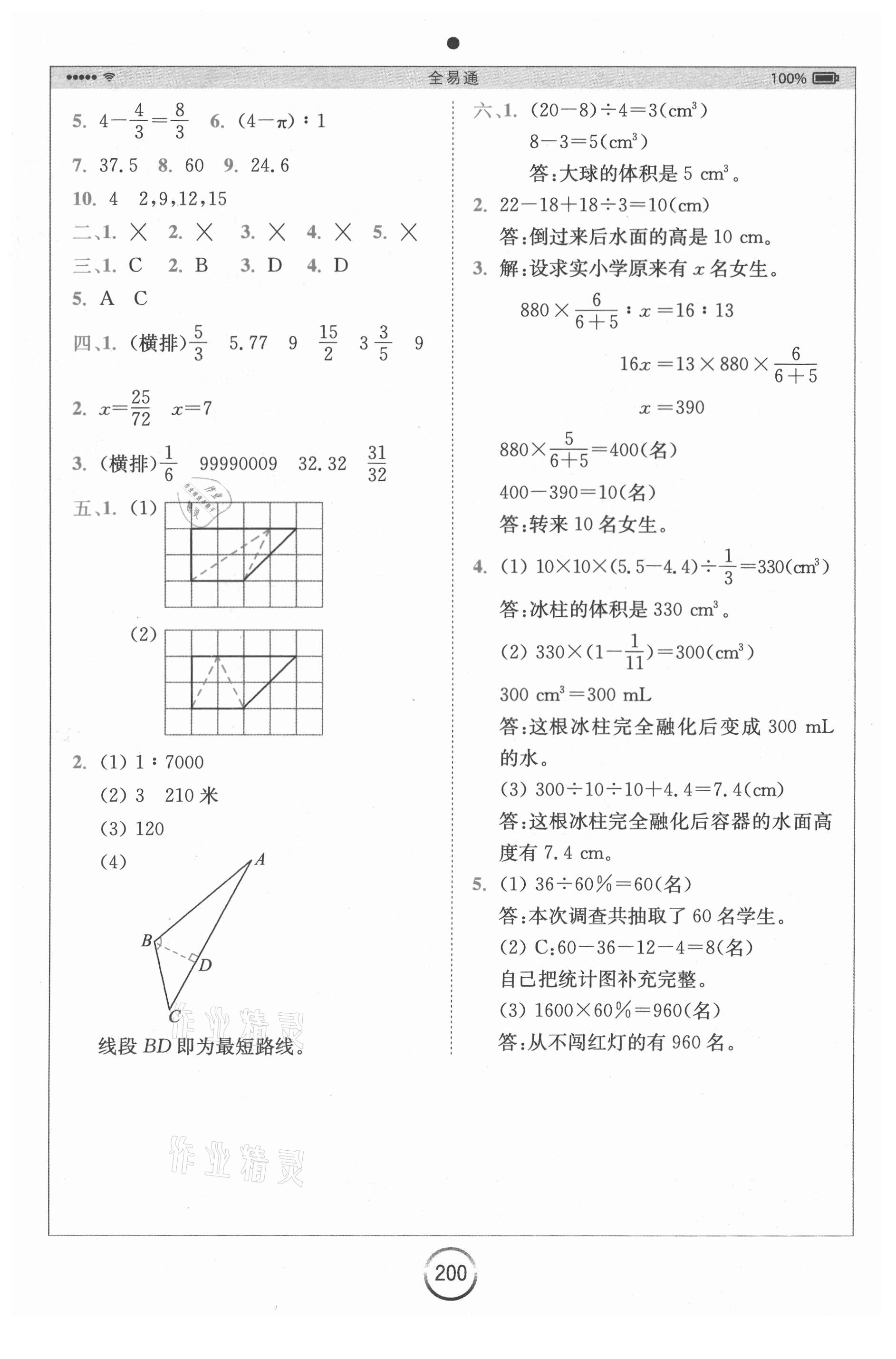 注:目前有些书本章节名称可能整理的还不是很完善,但都是按照顺序排列的,请同学们按照顺序仔细查找。练习册 2021年全易通六年级数学下册苏教版 答案主要是用来给同学们做完题方便对答案用的,请勿直接抄袭。