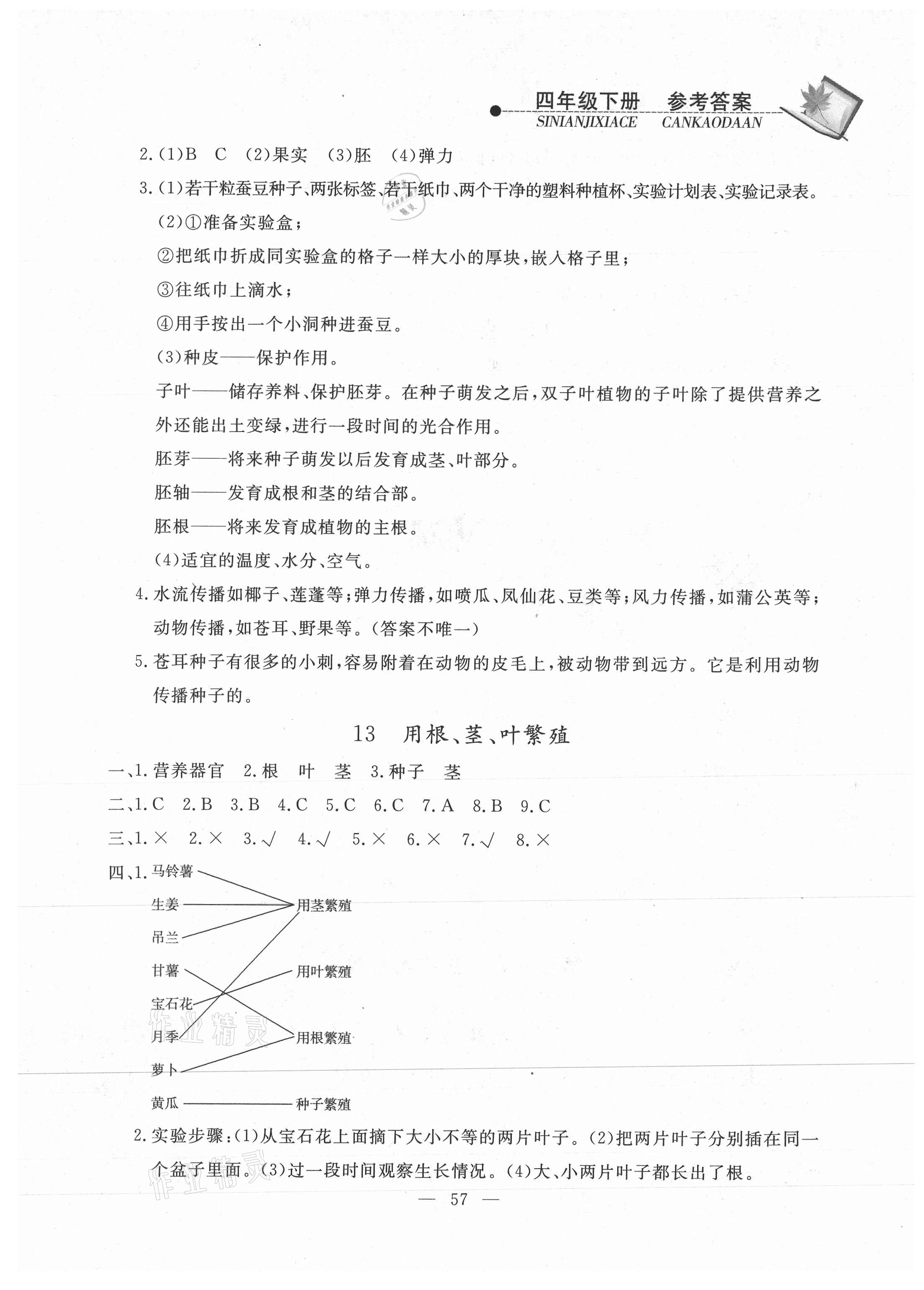 2021年同步练习册四年级科学下册苏教版山东科学技术出版社