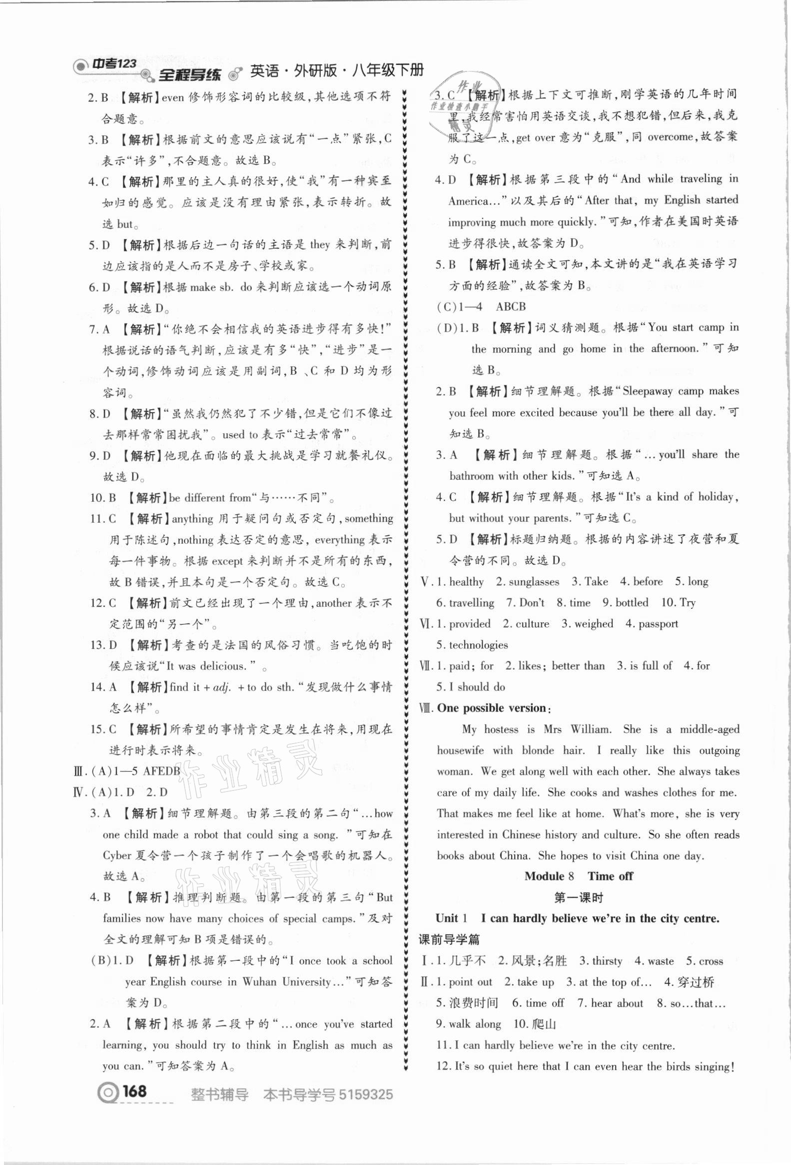 注:目前有些书本章节名称可能整理的还不是很完善,但都是按照顺序排列的,请同学们按照顺序仔细查找。练习册 2021年中考123全程导练八年级英语下册外研版 答案主要是用来给同学们做完题方便对答案用的,请勿直接抄袭。