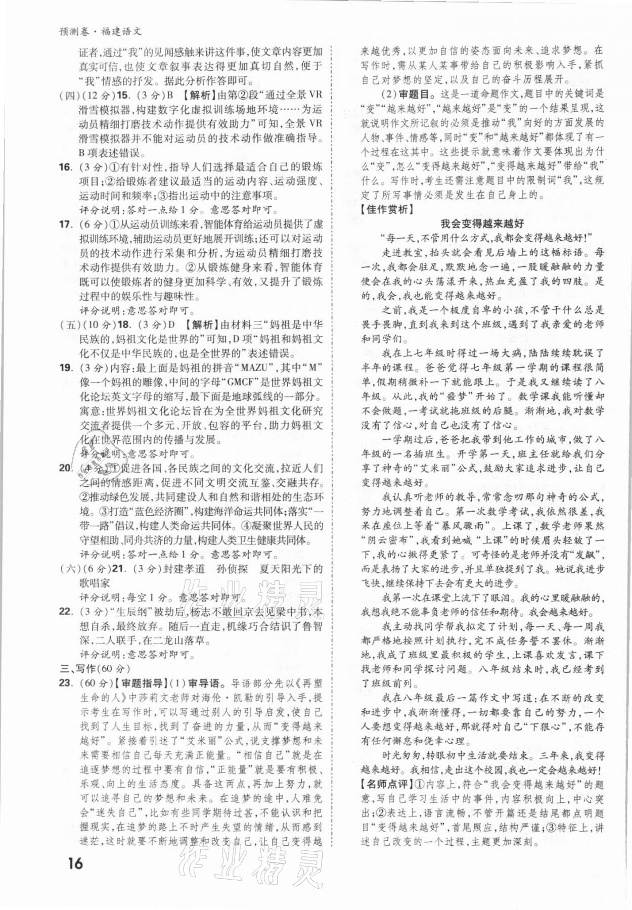 注:目前有些书本章节名称可能整理的还不是很完善,但都是按照顺序排列的,请同学们按照顺序仔细查找。练习册 2021年万唯中考预测卷语文福建专版 答案主要是用来给同学们做完题方便对答案用的,请勿直接抄袭。