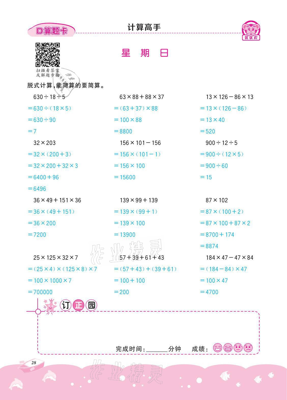 注:目前有些书本章节名称可能整理的还不是很完善,但都是按照顺序排列的,请同学们按照顺序仔细查找。练习册 2021年小学数学计算高手四年级下册冀教版北京联合出版公司 答案主要是用来给同学们做完题方便对答案用的,请勿直接抄袭。
