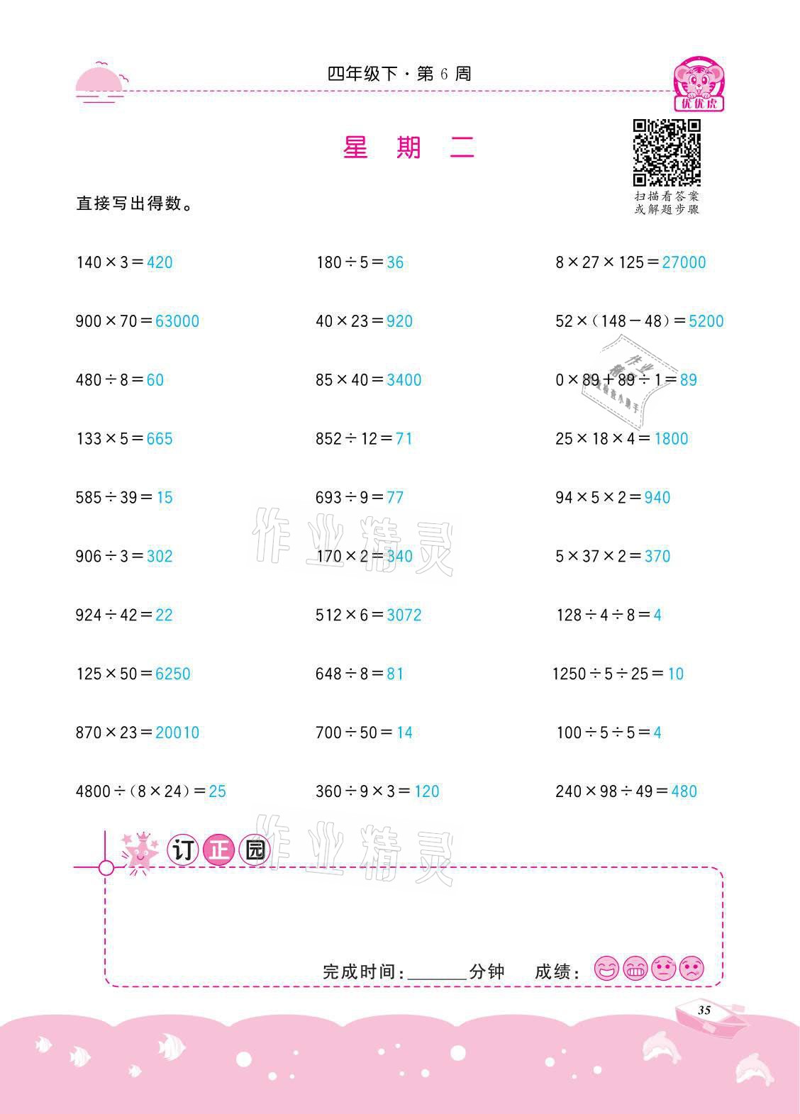 注:目前有些书本章节名称可能整理的还不是很完善,但都是按照顺序排列的,请同学们按照顺序仔细查找。练习册 2021年小学数学计算高手四年级下册冀教版北京联合出版公司 答案主要是用来给同学们做完题方便对答案用的,请勿直接抄袭。
