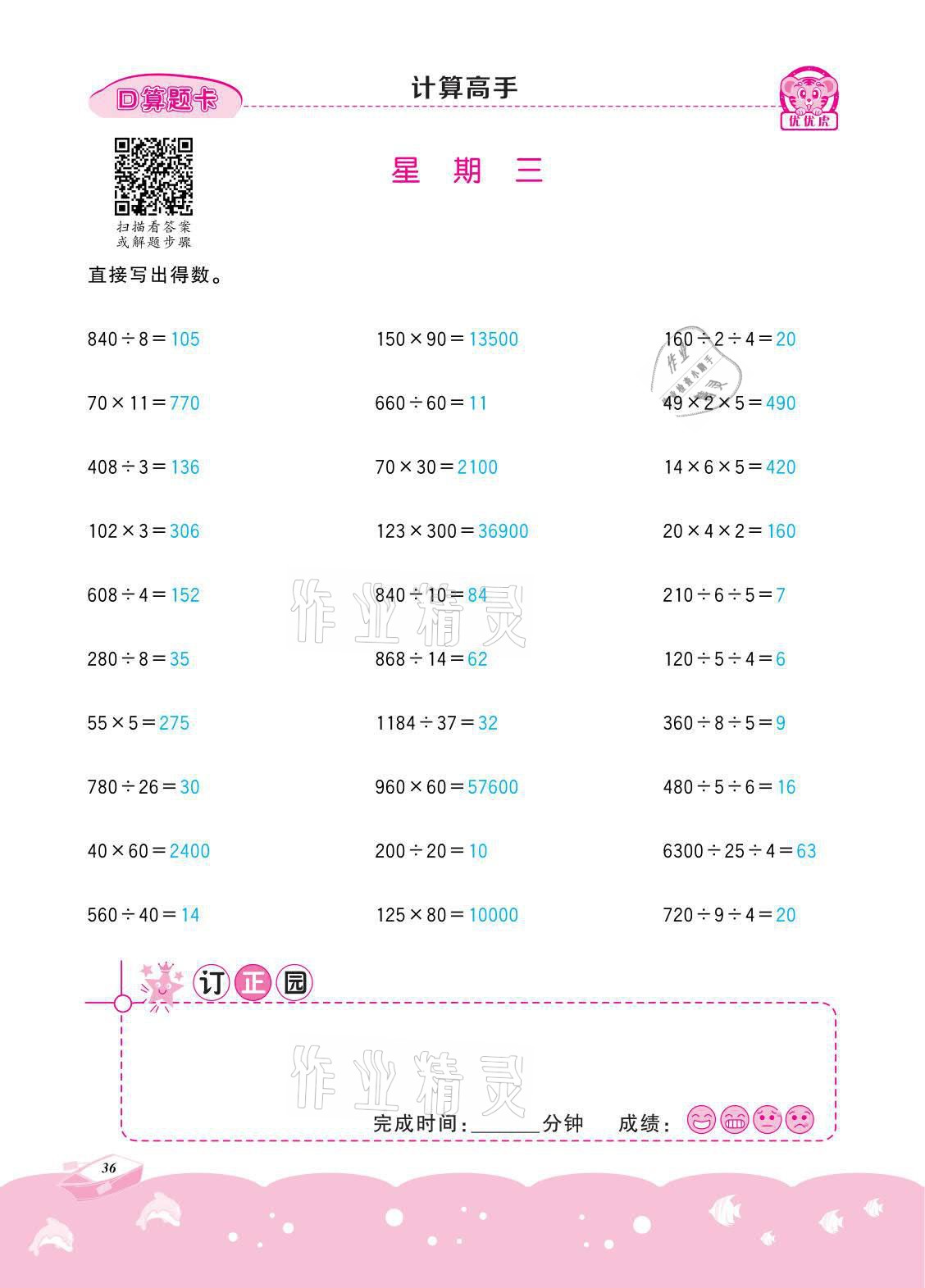注:目前有些书本章节名称可能整理的还不是很完善,但都是按照顺序排列的,请同学们按照顺序仔细查找。练习册 2021年小学数学计算高手四年级下册冀教版北京联合出版公司 答案主要是用来给同学们做完题方便对答案用的,请勿直接抄袭。