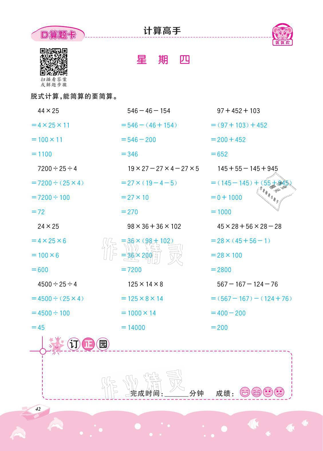 2021年小学数学计算高手四年级下册冀教版北京联合出版公司