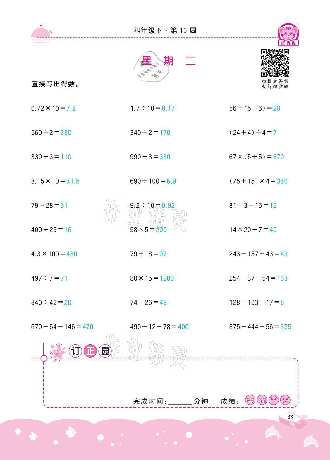 注:目前有些书本章节名称可能整理的还不是很完善,但都是按照顺序排列的,请同学们按照顺序仔细查找。练习册 2021年小学数学计算高手四年级下册冀教版北京联合出版公司 答案主要是用来给同学们做完题方便对答案用的,请勿直接抄袭。