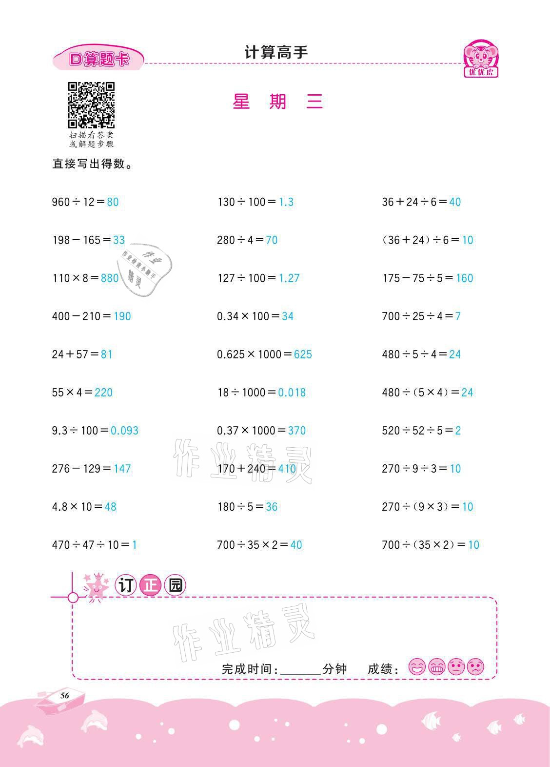 注:目前有些书本章节名称可能整理的还不是很完善,但都是按照顺序排列的,请同学们按照顺序仔细查找。练习册 2021年小学数学计算高手四年级下册冀教版北京联合出版公司 答案主要是用来给同学们做完题方便对答案用的,请勿直接抄袭。