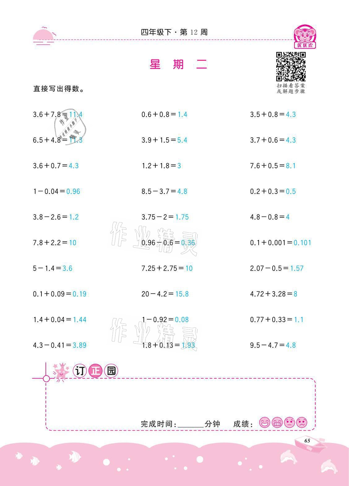 注:目前有些书本章节名称可能整理的还不是很完善,但都是按照顺序排列的,请同学们按照顺序仔细查找。练习册 2021年小学数学计算高手四年级下册冀教版北京联合出版公司 答案主要是用来给同学们做完题方便对答案用的,请勿直接抄袭。