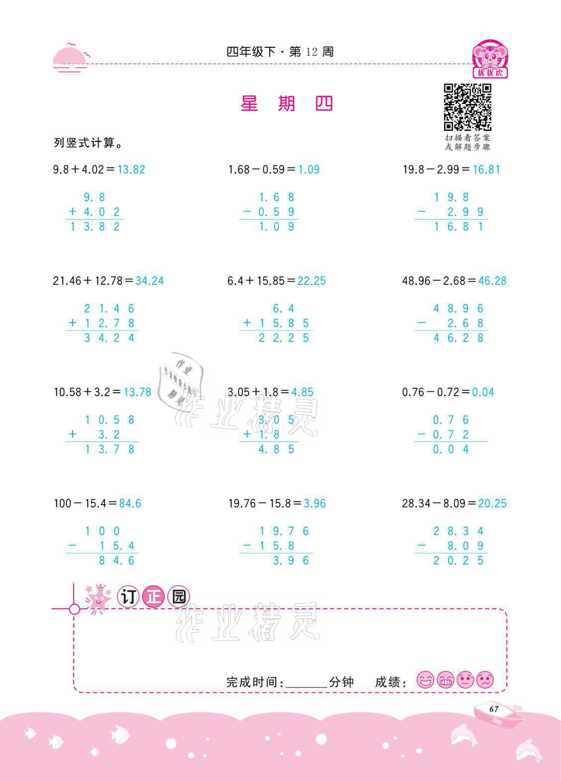 2021年小学数学计算高手四年级下册冀教版北京联合出版公司