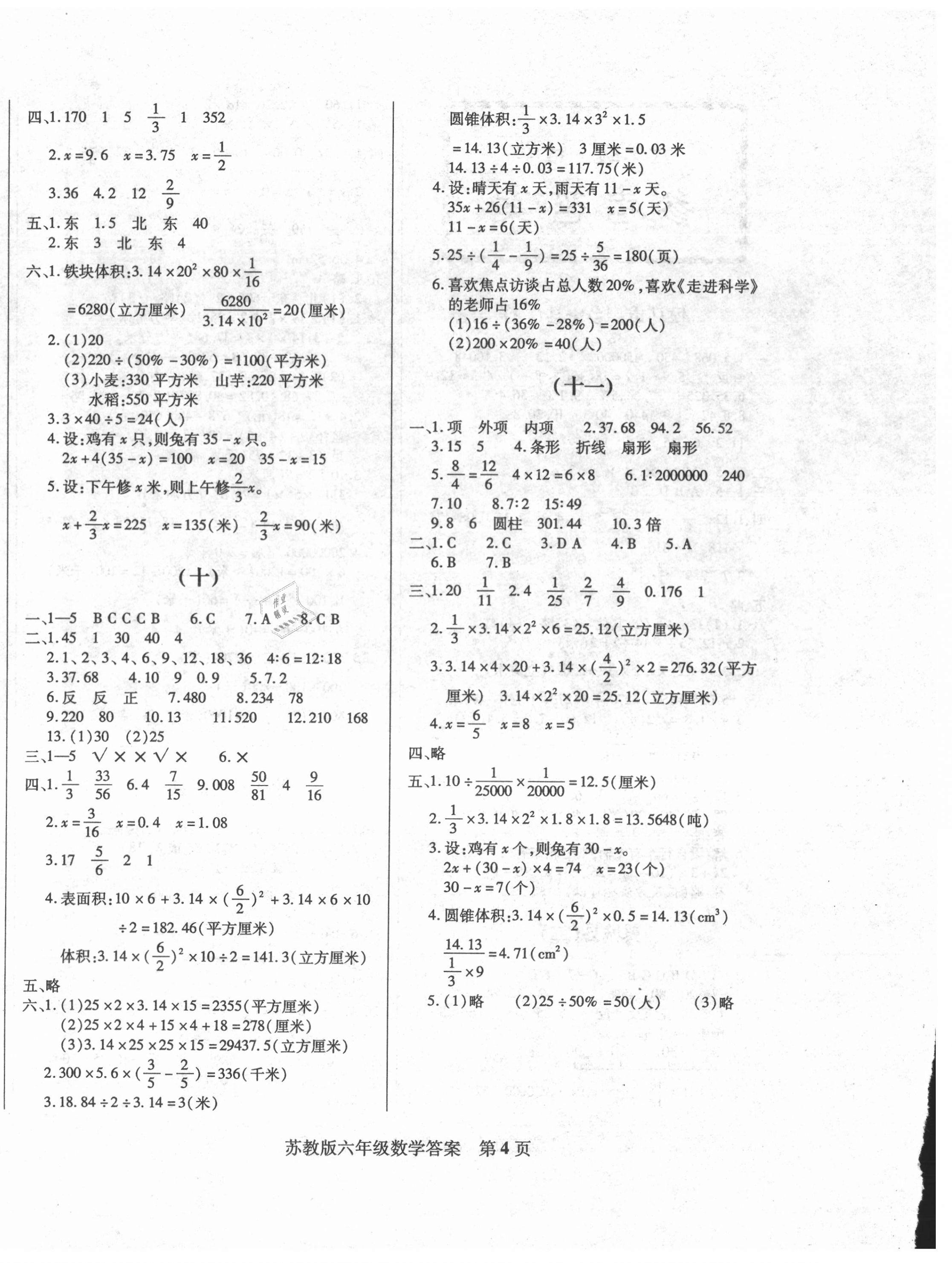 注:目前有些书本章节名称可能整理的还不是很完善,但都是按照顺序排列的,请同学们按照顺序仔细查找。练习册 2021年正宗十三县六年级数学下册苏教版 答案主要是用来给同学们做完题方便对答案用的,请勿直接抄袭。