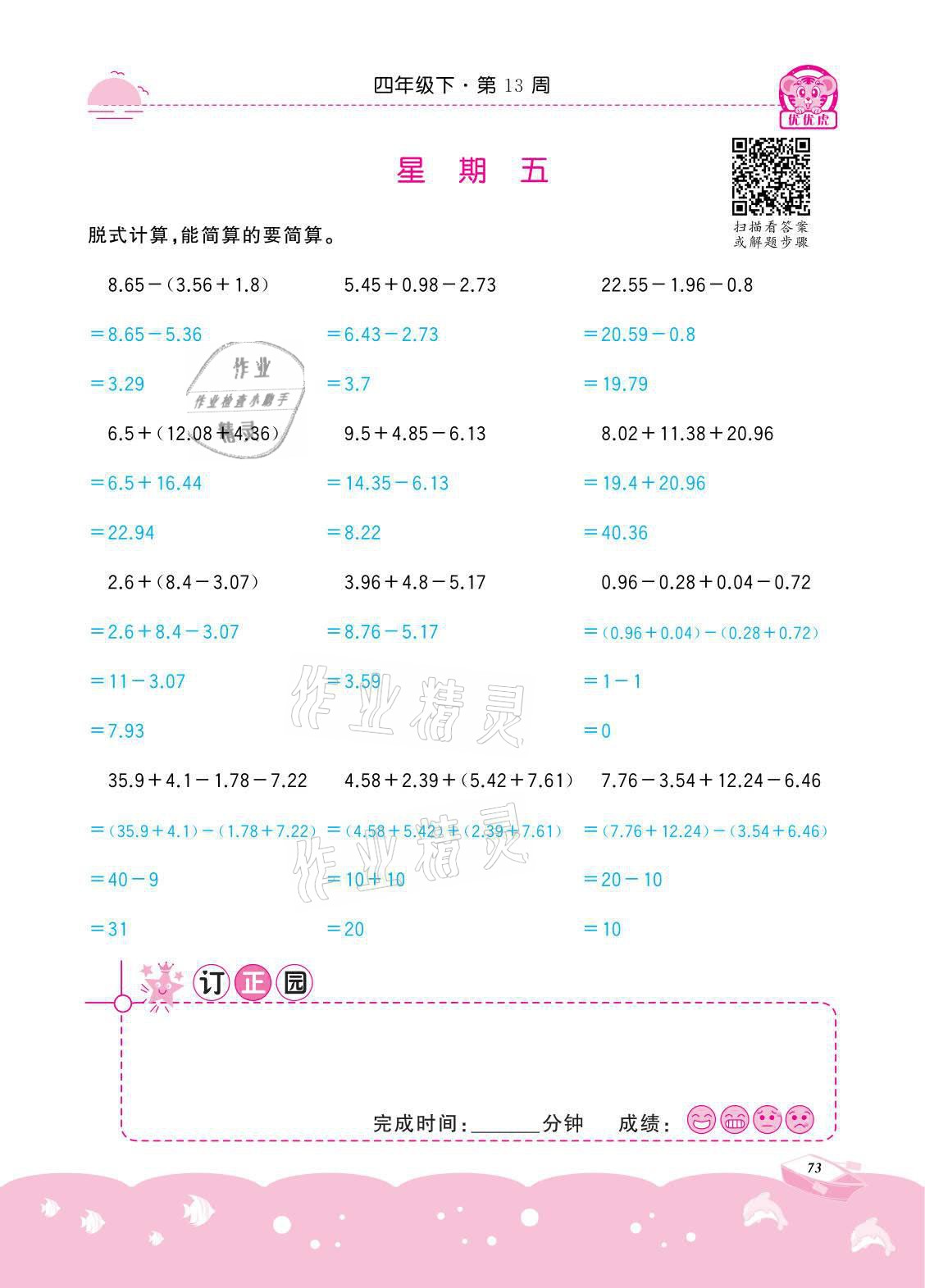2021年小学数学计算高手四年级下册冀教版北京联合出版公司