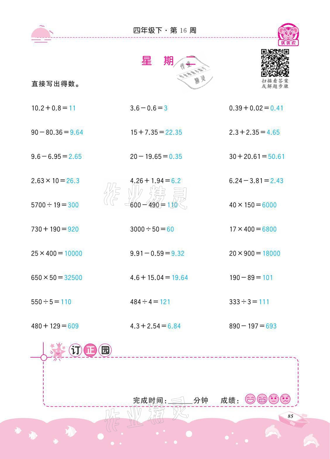 注:目前有些书本章节名称可能整理的还不是很完善,但都是按照顺序排列的,请同学们按照顺序仔细查找。练习册 2021年小学数学计算高手四年级下册冀教版北京联合出版公司 答案主要是用来给同学们做完题方便对答案用的,请勿直接抄袭。