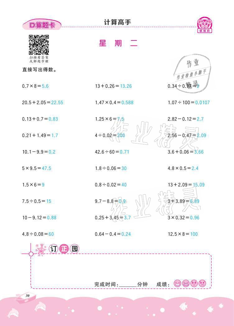 注:目前有些书本章节名称可能整理的还不是很完善,但都是按照顺序排列的,请同学们按照顺序仔细查找。练习册 2021年小学数学计算高手五年级下册冀教版北京联合出版公司 答案主要是用来给同学们做完题方便对答案用的,请勿直接抄袭。