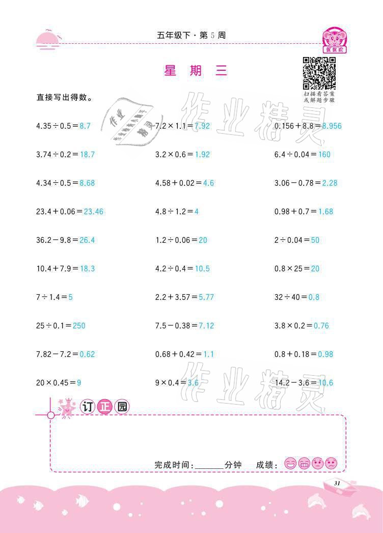 注:目前有些书本章节名称可能整理的还不是很完善,但都是按照顺序排列的,请同学们按照顺序仔细查找。练习册 2021年小学数学计算高手五年级下册冀教版北京联合出版公司 答案主要是用来给同学们做完题方便对答案用的,请勿直接抄袭。