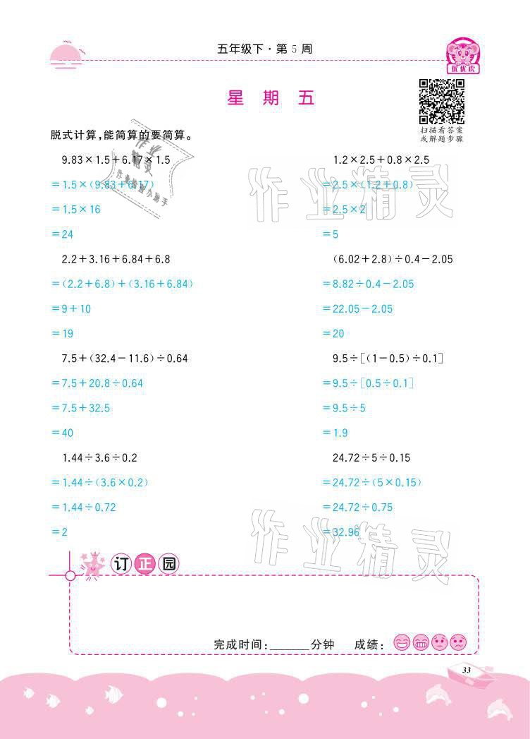 2021年小学数学计算高手五年级下册冀教版北京联合出版公司