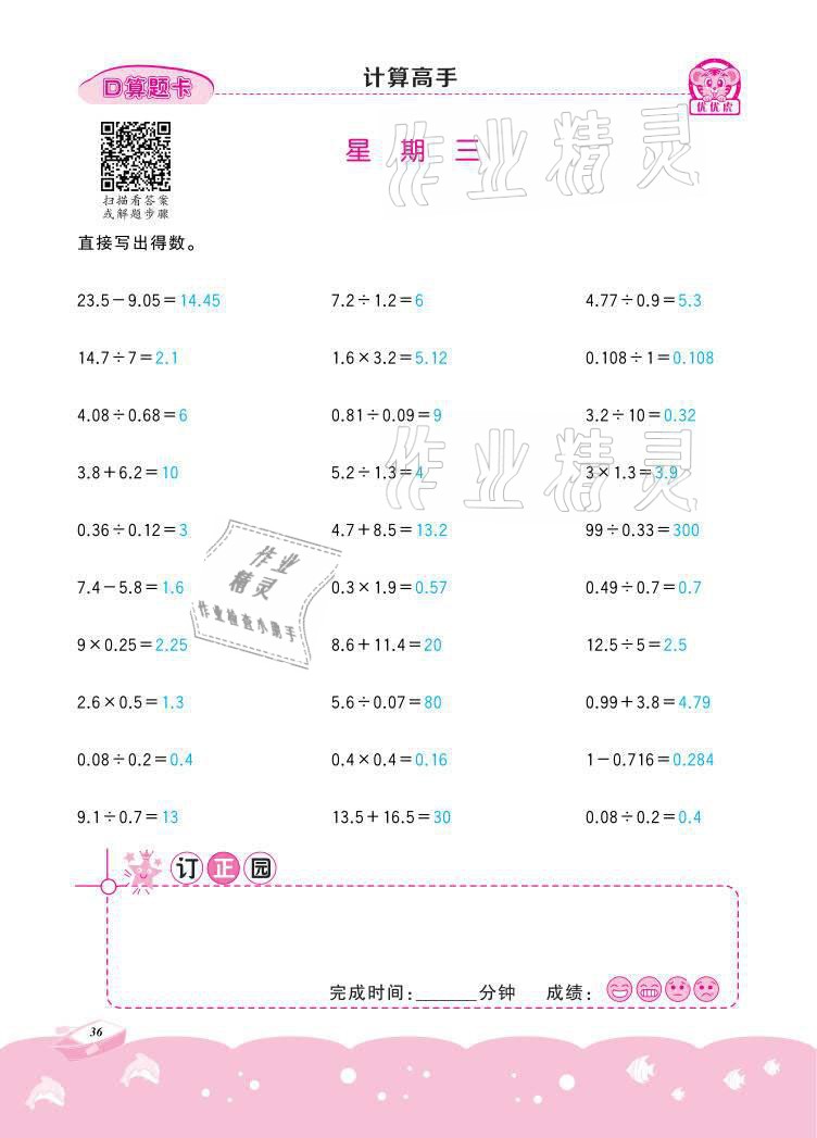 注:目前有些书本章节名称可能整理的还不是很完善,但都是按照顺序排列的,请同学们按照顺序仔细查找。练习册 2021年小学数学计算高手五年级下册冀教版北京联合出版公司 答案主要是用来给同学们做完题方便对答案用的,请勿直接抄袭。