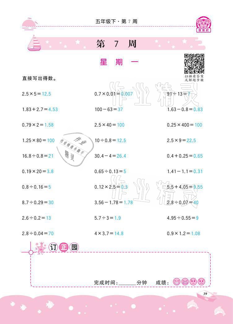 注:目前有些书本章节名称可能整理的还不是很完善,但都是按照顺序排列的,请同学们按照顺序仔细查找。练习册 2021年小学数学计算高手五年级下册冀教版北京联合出版公司 答案主要是用来给同学们做完题方便对答案用的,请勿直接抄袭。